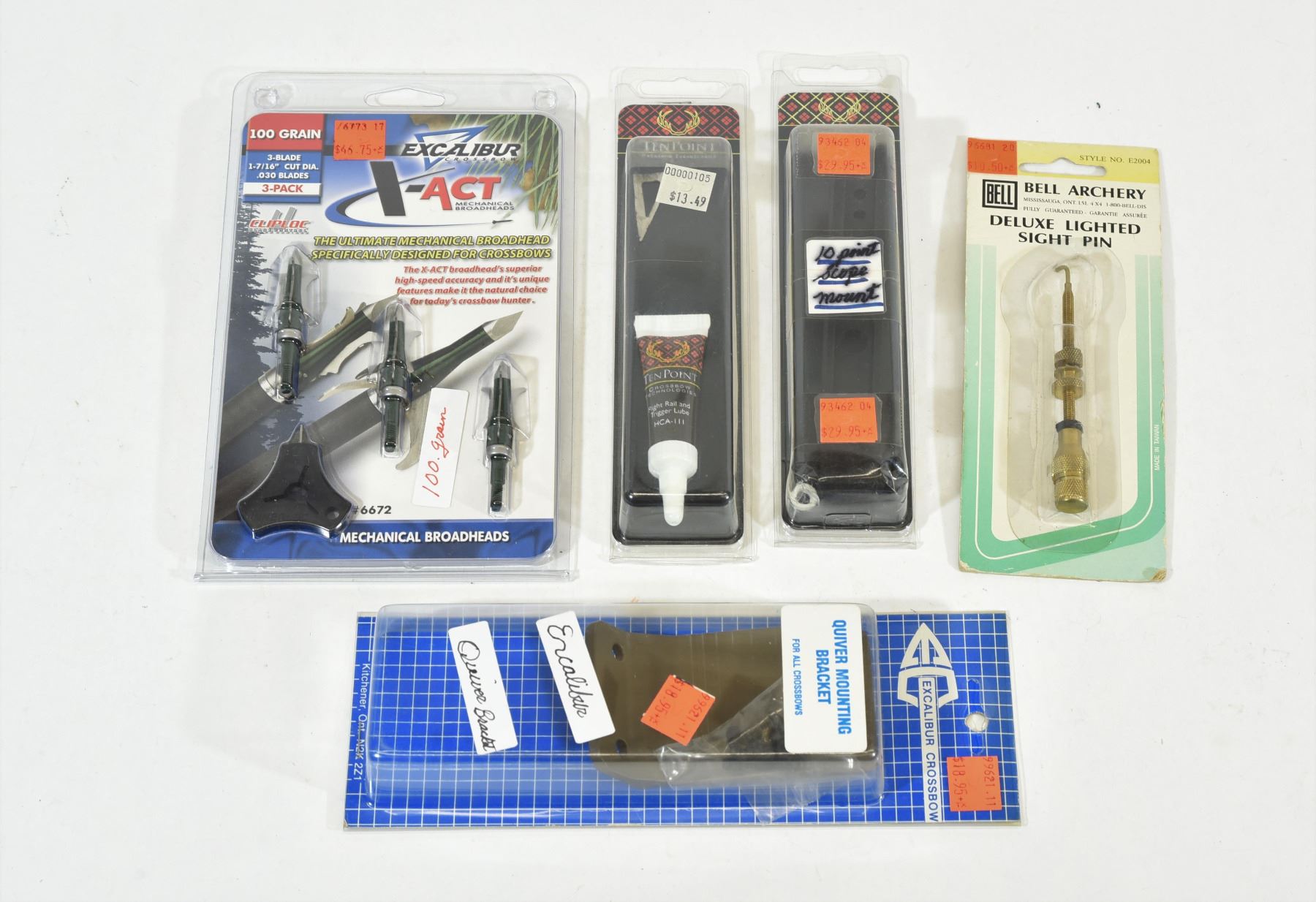 Excalibur quiver mount, lighted sight pin, 10 Point scope mount, Ten Point rail lube, Excalibur 100grn broadheads.
