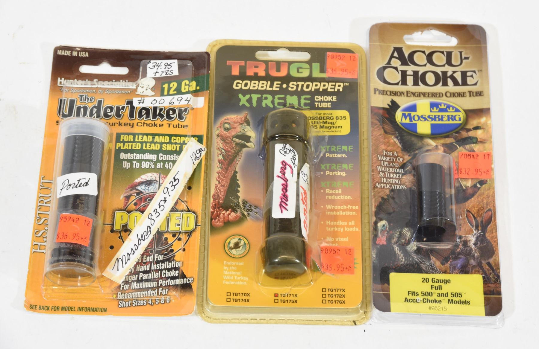 All for Mossberg 1) Undertaker 12 ga ported, lead & copper plated lead shot only. Fits 835 & 935 as well as Maverik91 2) TruGlo Gobble stopper 12 ga fits 835 Ulti-Mag/935 magnum, ported 3) 20 ga. Accu-Choke, full, fits 500 & 505 accu-choke models