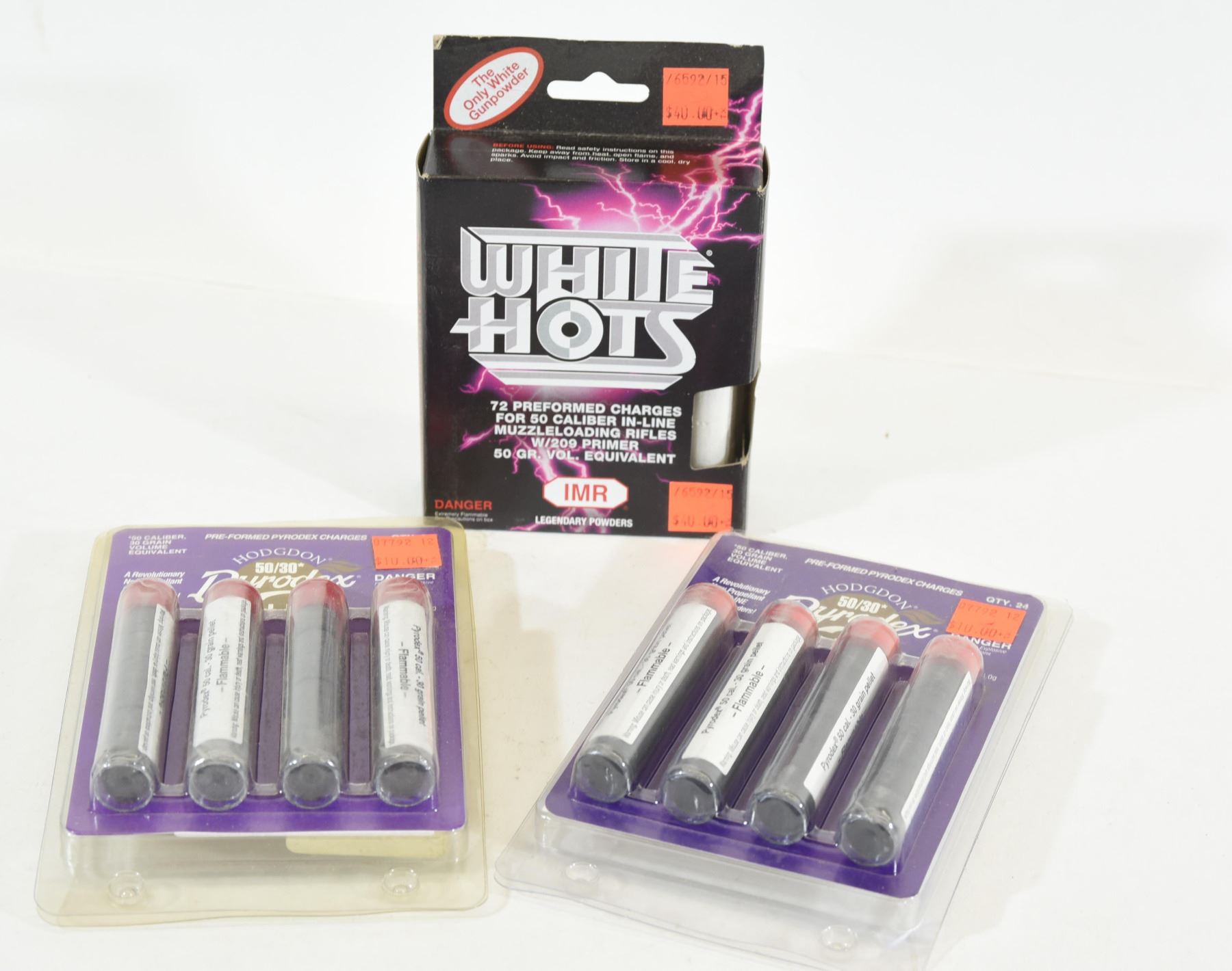 72 IMR White hots for .50 cal. in lines w/209 primers, 48 Hodgdon 50/30 pyrodex pellets
