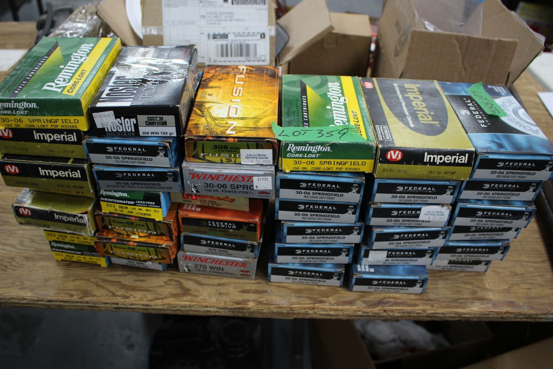 Lot 359 Box Lot of 38 Boxes of Mixed Brass: 30.06; 308; 223; 7mm 08; 270Win; 243Win & 303 British