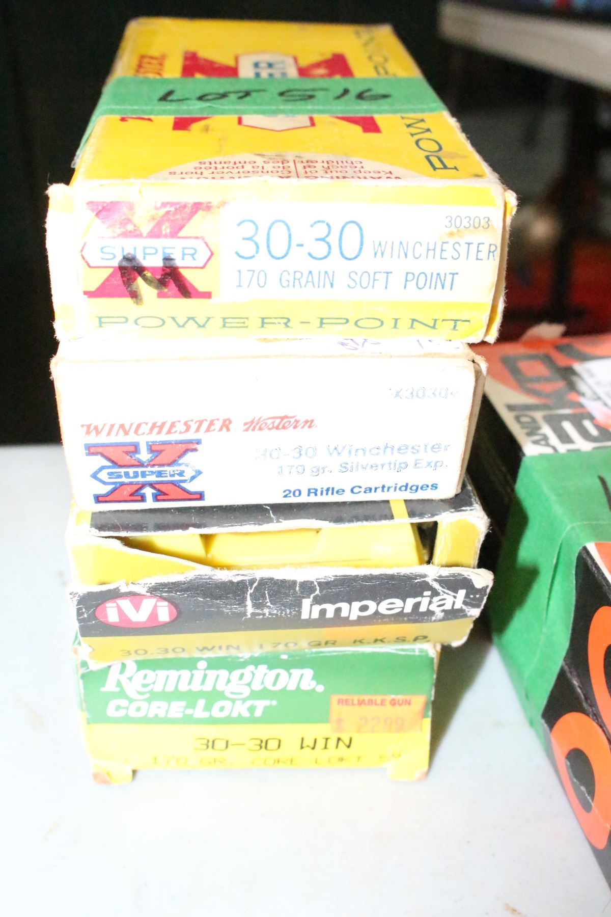 Lot 516 4 Boxes of Mixed Factory 30-30 Winchester Live Rnds, 170 gr., Soft Point & Silver Tip Express