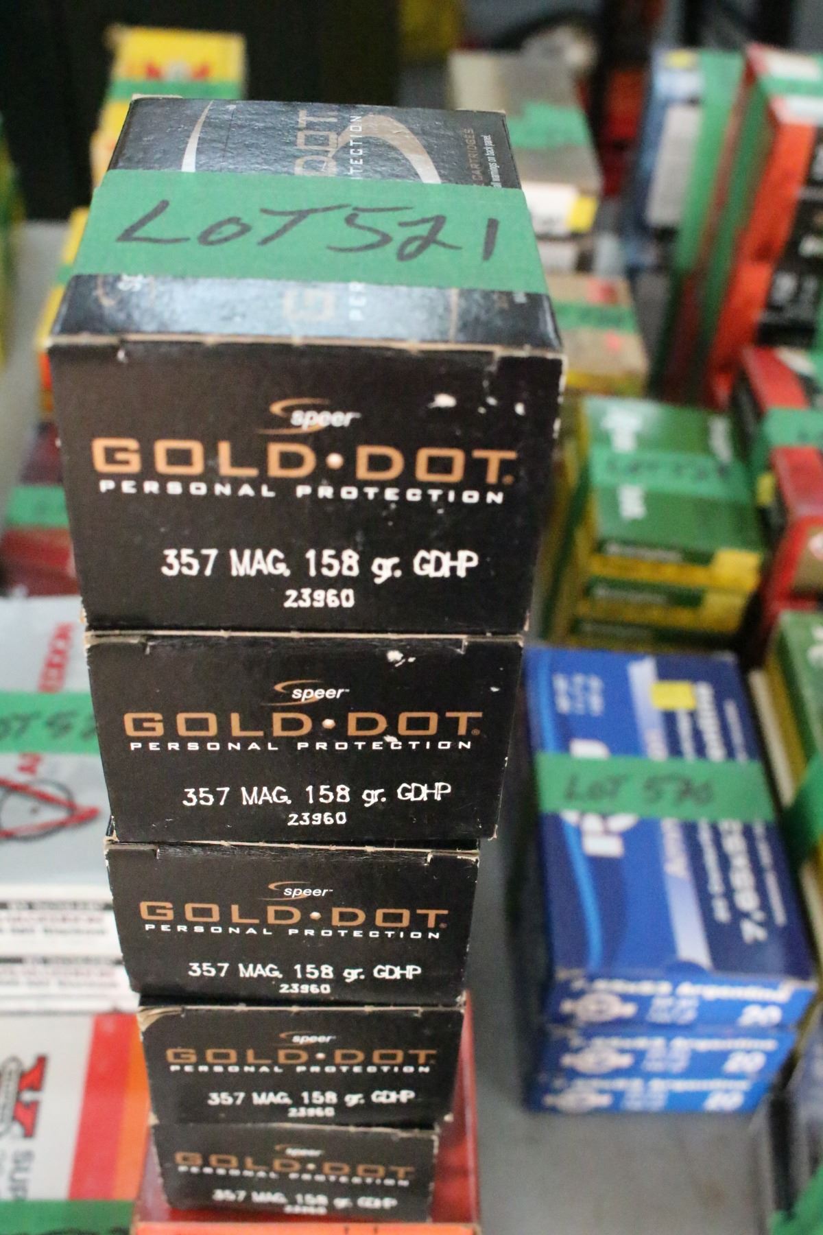 Lot 521 5 Boxes of Factory Gold Dot 357 Magnum Live Rnds, 150 gr., HP