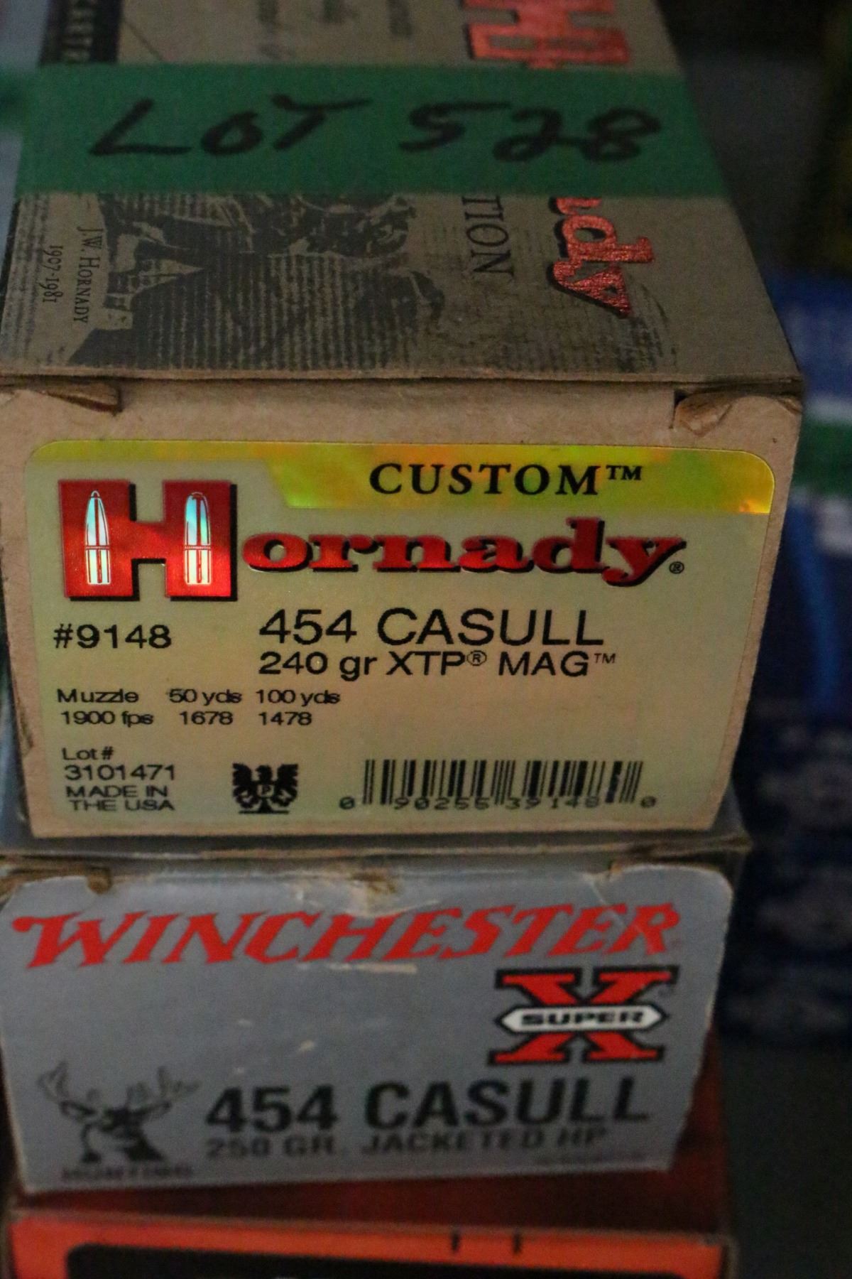 Lot 528 1 Box of Factory Winchester 454 Casull Live Rnds, 250 gr., Jacketed HP & 1 Box of Factory Hornady 45