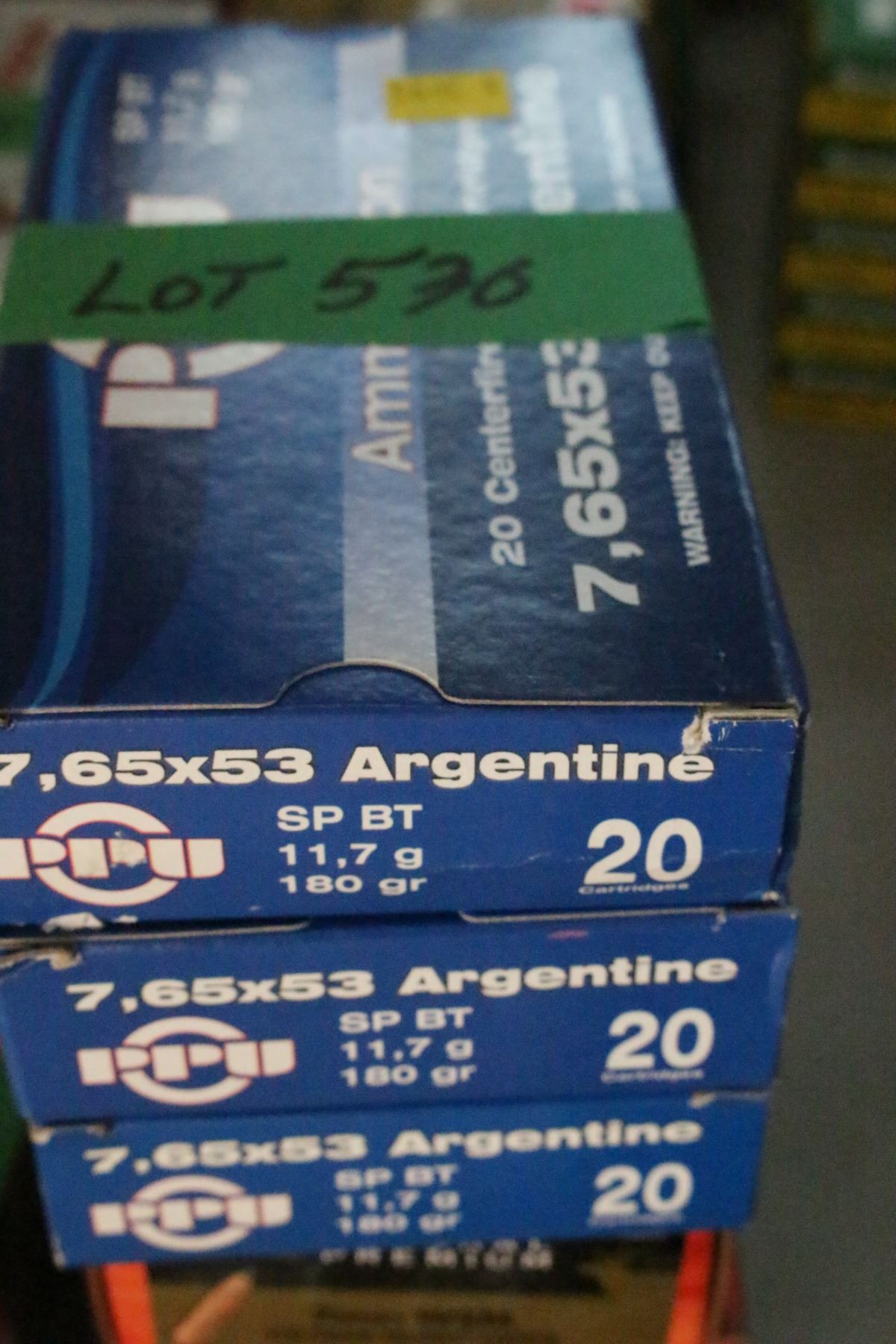 Lot 530 3 Boxes of Factory PPU, 7.65 x 53 Argentina Live Rnds, 180 gr.
