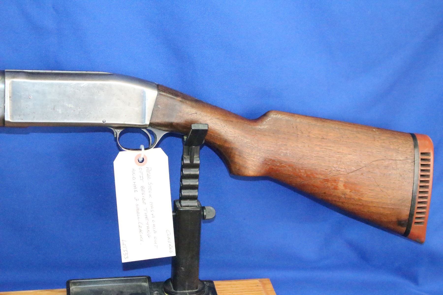 12 ga.; Pump Action; Rear Stock Has a Chip out of it & is Cracked; Has seen some use; S/N 134127