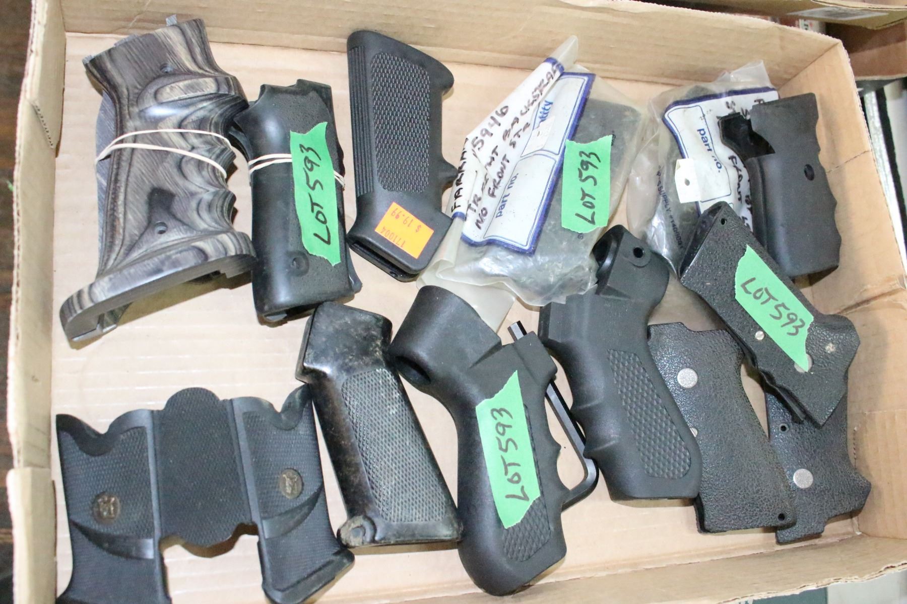 Lot 593 Flat of 12 Pistol Grips for Various Handguns
