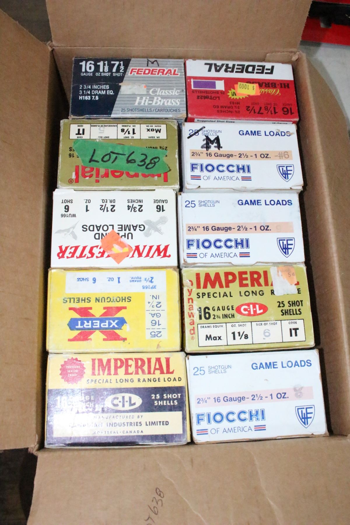 Lot 638 10 Boxes of Mixed Brands & Shot, 16 ga., 2 3/4
