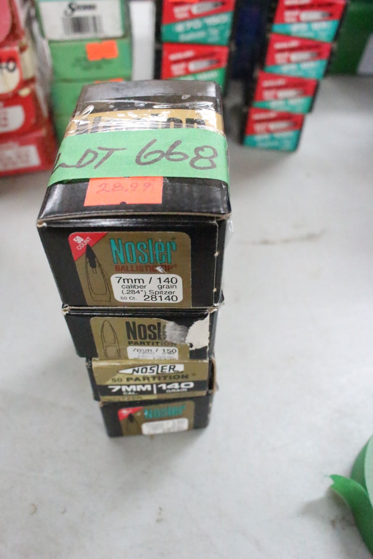 Lot 668 4 Boxes of Nosler 7mm Bullets, 140 gr., & 150 gr. All 'Appear' Full