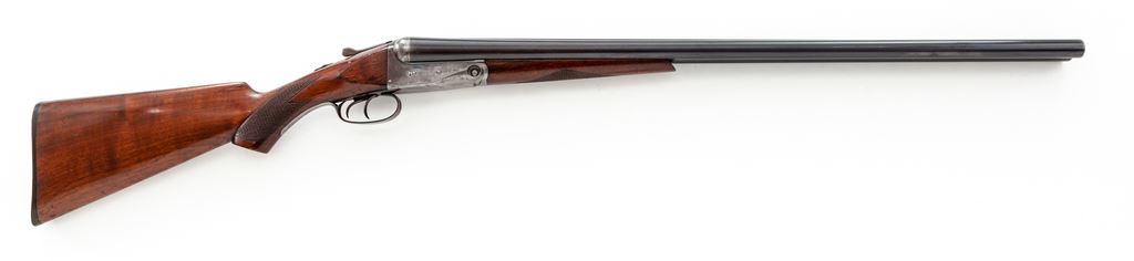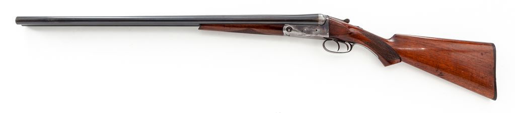 Parker Trojan Grade Side-by-Side Shotgun, #199540, 12 ga. 28'' barrels have 2-1/2'' chambers and are choked Full/Full. Concave rib marked ''Parker Bros. Makers, Meriden, CT. U.S.A. Trojan Steel''. Boxlock action has double triggers, extractors, and auto safety. Field Grade buttstock and splinter forend have minimal checkering, no grip cap, and plastic buttplate. Mfg'd 1922. Condition is very good to fine with approx. 20% case color remaining, some frosting to receiver, and typical handling marks to wood. However, gun appears 100% original; action locks very tight and functions correctly, and bores are bright. Est.: $1,000-$1,500. (C&R)