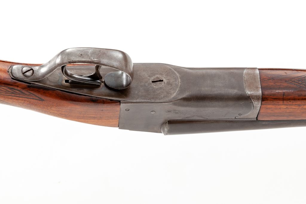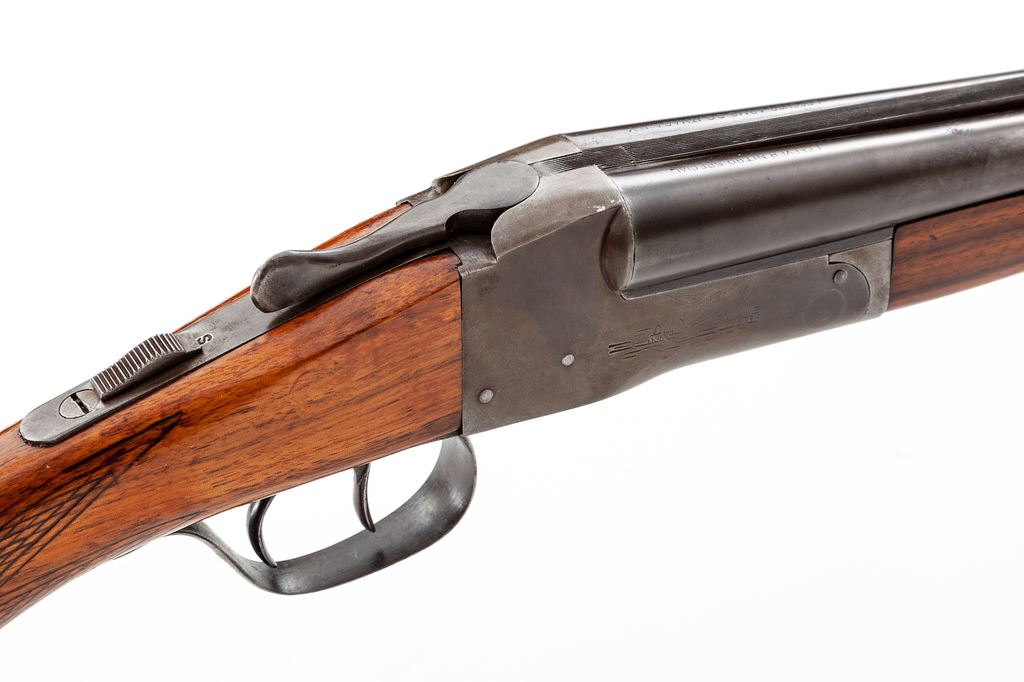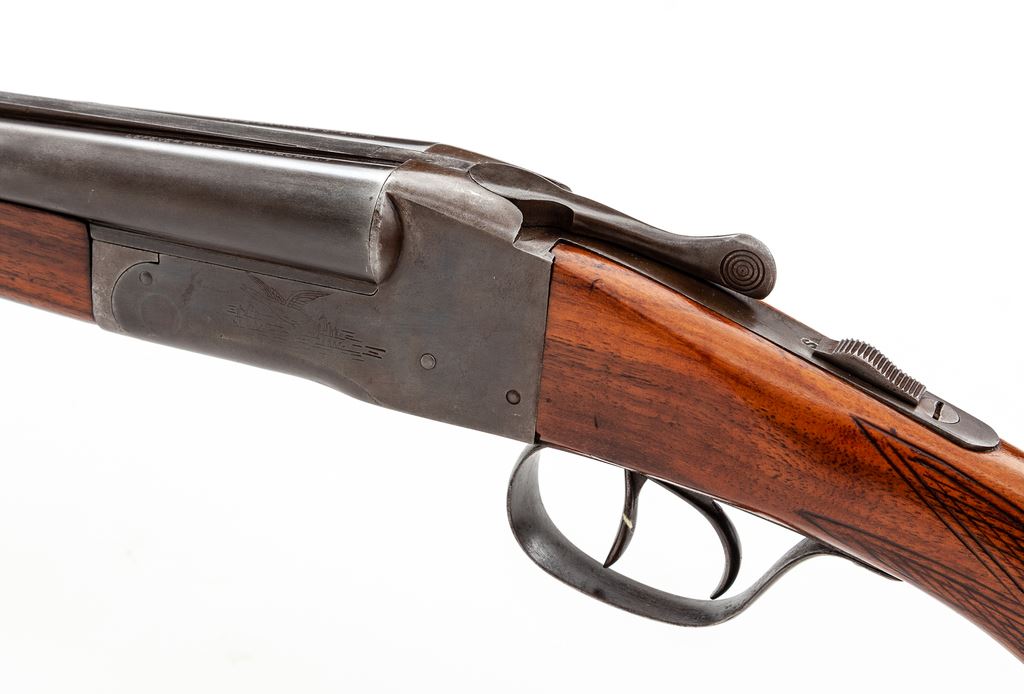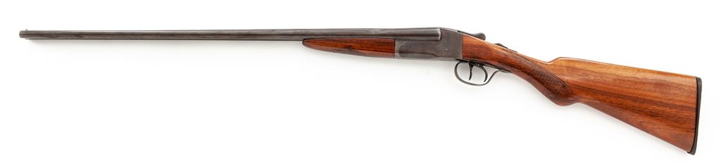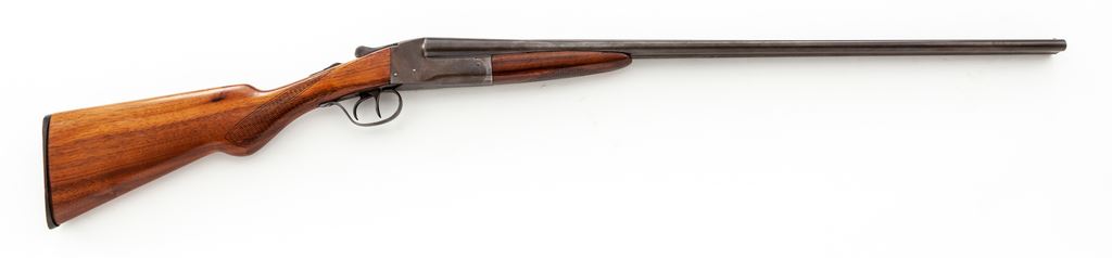 LeFever Nitro Special Field Grade Side-by-Side Shotgun, #205664. .410 bore 26'' barrels have 2-3/4'' chambers and are choked Mod./Full. Simple boxlock action uses crossbolt lockup on rib extension and has double triggers, extractors and auto safety. Field Grade walnut used on splinter forend and pistol-grip buttstock, both simply checkered, with later incorrect buttplate (easily fixed). Mfg'd probably 1930s. Condition is very good, with traces of color to receiver, blue barrels turning brown, but no serious marks to wood (possibly refinished). Action shows little wear and locks up tight, bores are bright. A nice little .410 SxS. Est.: $1,200-$1,500. (C&R)