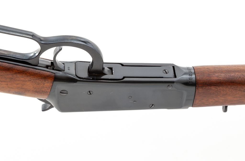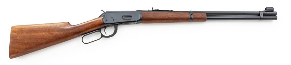 Pre-64 Winchester Model 94 Lever Action Carbine, #1456283, .32 WS cal., 20'' barrel, blue finish, walnut stock, checkered steel buttplate, with standard front and rear sights. Dating from the mid-1940s. Condition is excellent, appearing near new, with only the lightest marks to the stock from handling. Good action, bright bore. Est.: $600-$800. (C&R)