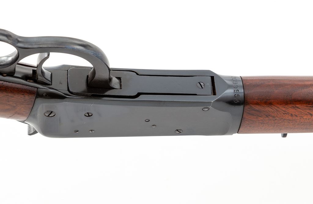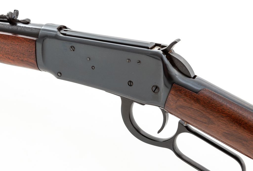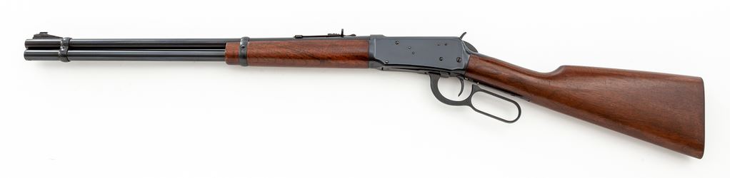 Pre-64 Winchester Model 94 Lever Action Carbine, #2099953, .30-30 cal., 20'' barrel, blue finish, walnut stock, checkered steel buttplate, with standard front and rear sights (missing front sight hood). Mfg'd 1955. Condition is excellent, appearing near new, with only light marks to the stock from handling. Good action, bright bore. Est.: $600-$800. (C&R)