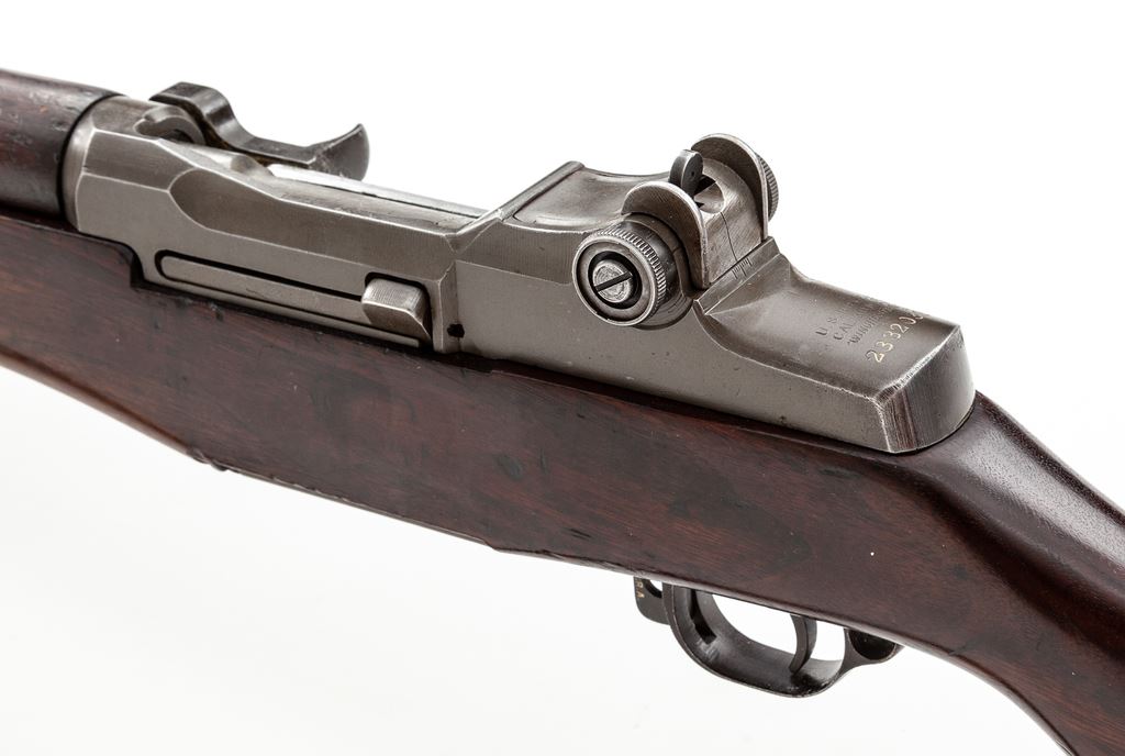 Winchester M1 Garand Semi-Automatic Rifle, #2332038, .30-06 cal., 24'' barrel, parkerized finish, walnut stock, blade front sight with protective ears and adjustable aperture rear sight. Marked on receiver tang ''U.S.RIFLE CAL..30 M1 WINCHESTER TRADEMARK''. Faint boxed ''C-SAA'' cartouche on right side of stock and boxed ''P'' firing proof on underside of pistol grip. Barrel stamped ''S-A-12-50''. Bolt, trigger housing, hammer and triggerguard stamped ''W.R.A.''. Operating rod stamped ''SA''. Condition overall is very good with over 90% finish remaining on the metal, with patina under the wood line of the receiver and the gas cylinder finished a dark color. Lower band refinished to a dull grey and handguard clip polished bright. Wood is very good with added finish applied over old dents and scratches on the stock. Action is smooth, bright bore is very good. Includes a U.S.G.I. nylon sling, a combination tool and grease pot. Est.: $1,000-$1,500. (C&R)