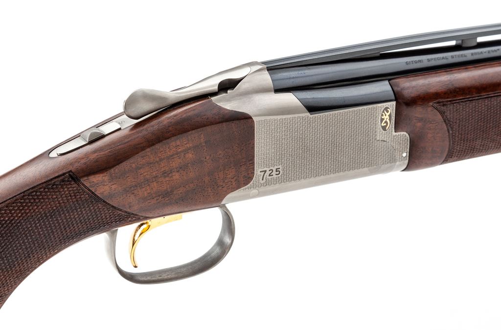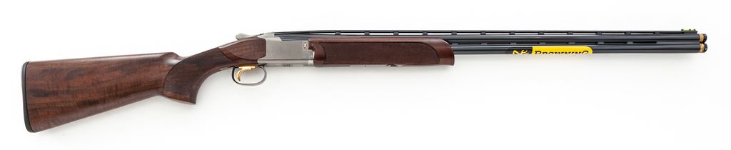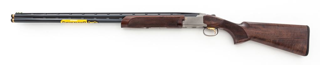 Browning Citori Model 725 Sporting Over/Under Shotgun, #31239ZT131, 28 ga. 30'' barrels have 2-3/4'' chambers, high ventilated rib and vent porting between barrels, and are fitted for Invector tubes (Mod./Full installed). Receiver is silver nitride finished with distinctive Browning logos, and includes auto ejectors, gold single selective trigger adjustable for length of pull, and non-auto safety. Grade III satin-finished forearm and pistol-grip buttstock have palm swell, no grip cap, and Browning Inflex recoil pad. Mfg'd 2016. Condition is almost new, as the action is very tight and bores are bright. A lovely little 28 ga. Sporting Clays gun. Est.: $1,500-$2,000. (Modern)