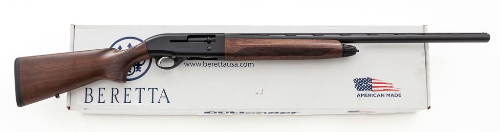 Like New Beretta A300 Outlander Semi-Automatic Shotgun, #RU002300, 12 ga., 3'' chamber, 28'' vent rib matte finished barrel with internal screw-in IM choke, black receiver, checkered pistol-grip wood stock, factory black rubber pad, brass bead front sight, and sling swivel studs. LOP is 14.25''. In original box that is numbered to the gun, with owner's manual, choke tube tool, and an additional ''IC'' and ''Full'' choke tube. Shotgun is in excellent as new overall condition, appearing to have been fired very little. Barrel with a few insignificant handling marks. Internally a very clean shotgun that shows very few signs of being fired. Est.: $500-$700. (Modern)