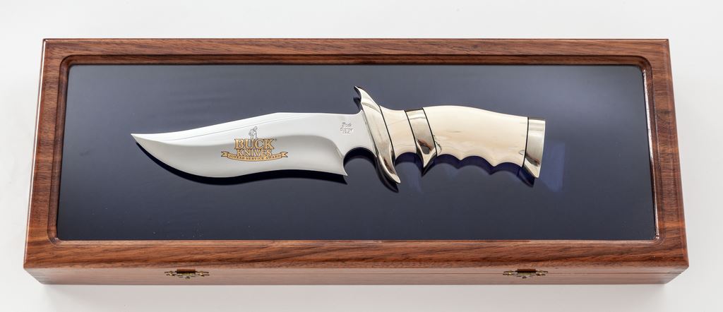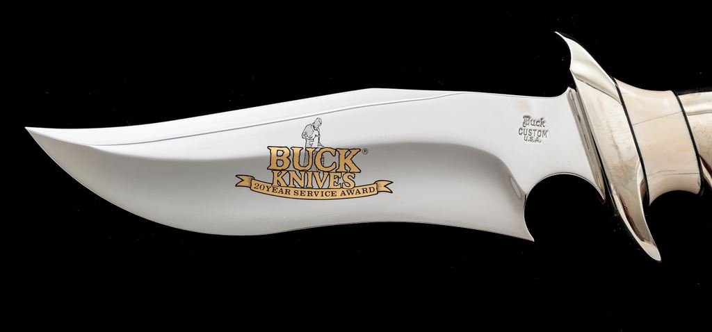 Lot 309 Rare Buck Knives 20-Year Service Award Custom Subhilt Bowie Knife