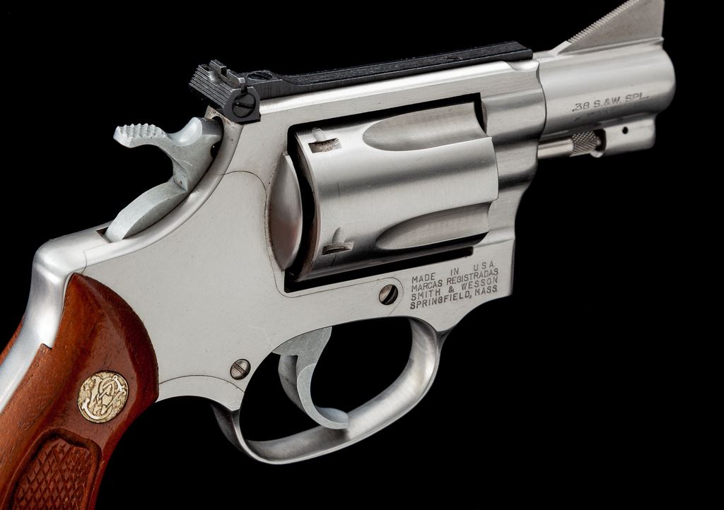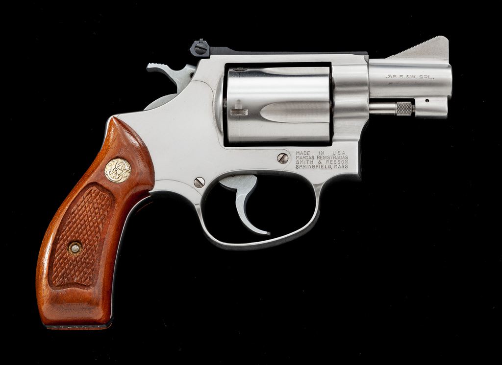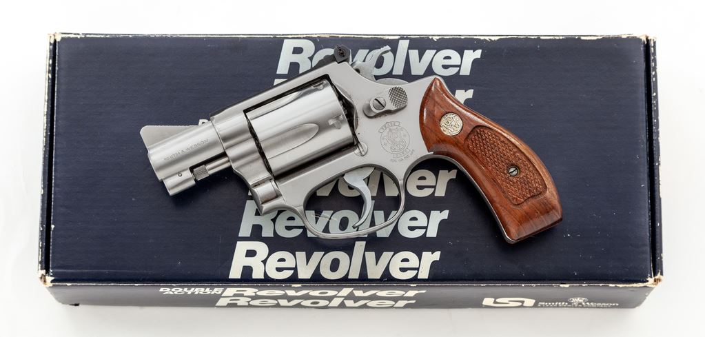 Limited Production Smith & Wesson Model 60-1 ''Ashland'' Chief's Special Double Action Revolver, #ALU1742, .38 Spec. cal., 2'' barrel, stainless steel, factory checkered round butt walnut grips with S&W medallions, checkered hammer, smooth trigger, tall ramped front sight and adjustable rear sight. In blue S&W cardboard box with partial end label, cleaning accessories, screwdriver, owner's manual, other misc. factory paperwork, and S&W packing paper. Condition is fine showing normal signs of light range use. Metal with a few scattered light scratches and small handling marks; cylinder with a thin index line. Factory lettering is clear and well defined. Grips with a few small and shallow impressions with an even color and finish; checkering is sharp. Action is crisp, bore is bright. Box shows moderate storage wear; left side of end label that contains the serial number is missing, the remaining piece under ''features'' has ''AS'' written in pen and a ''Special Order'' 5137 printed on the box. One of approx. 660 revolvers that were produced in 1986 for Ashland Shooters Supply. Est.: $600-$900. (Modern/PPT)