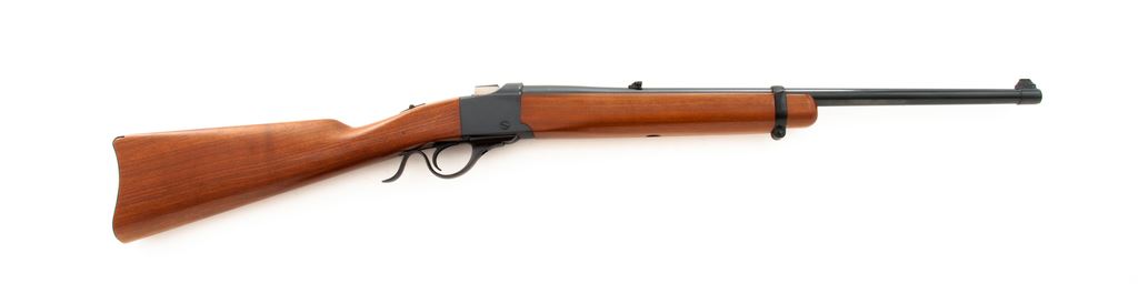 Ruger No. 3 Single Shot Rifle, #130-57471, .30-40 Krag cal., 22'' barrel, blue finish, smooth straight walnut stock and forend, fixed brass bead front sight, and folding rear sight. Mfg'd 1976. Left side of barrel is marked ''Made In The 200th Year Of American Liberty''. With the exception of a few small spots of very minor pitting on the barrel between the rear sight and receiver, this rifle is in near excellent condition. Approx. 97% original blue finish remains with clear and crisp factory lettering. Wood with a few shallow impressions and small handling marks at the forend and wrist; top left edge of buttstock with an approx. 1'' long line of tiny impressions. Action is crisp; mirror bright bore is excellent and appears to have been fired very little. Est.: $500-$700. (Modern)