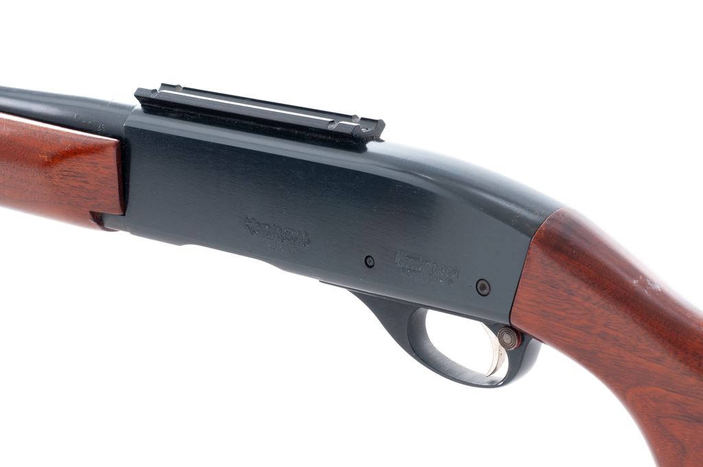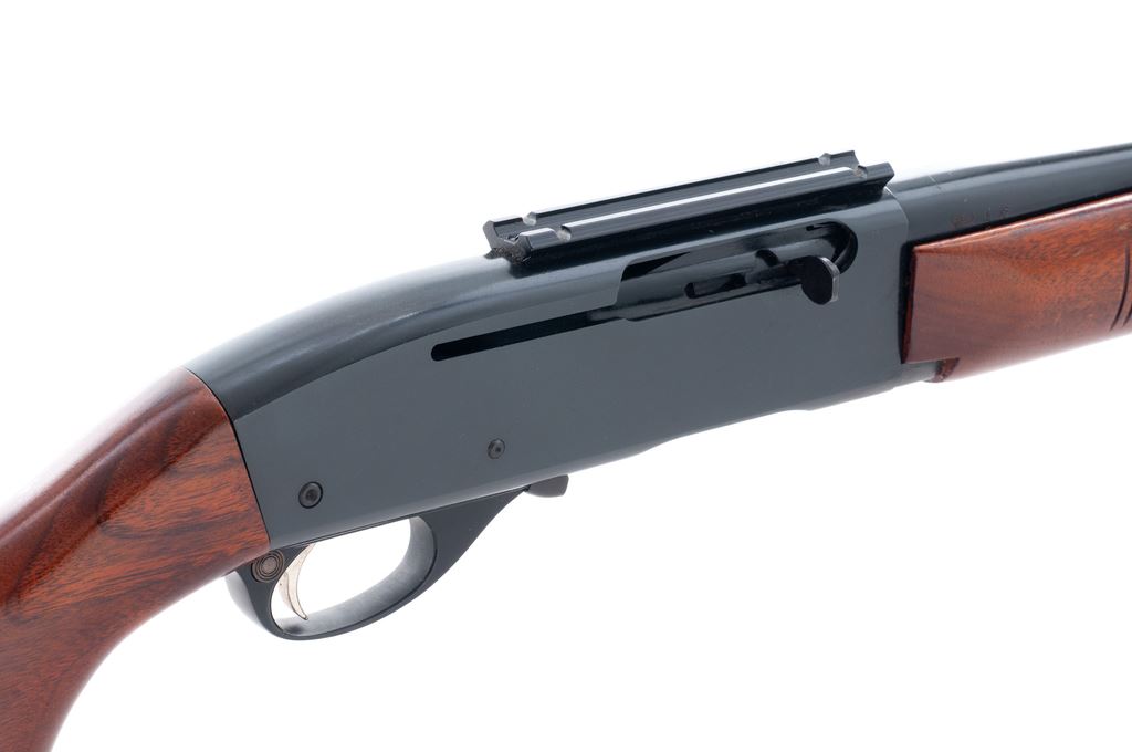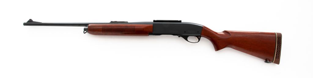 1st Year Production Remington Model 742 Woodsmaster Semi-Automatic Rifle, #28674, .280 Rem. cal., 22'' barrel, blue finish, pistol-grip walnut stock and grooved forend, brown rubber Mershon recoil pad, sling swivels, dovetailed brass bead front sight, rear sight base only, and top of receiver with a one-piece scope base. Missing magazine. Barrel date code is ''WG'' with the G being upside down, mfg'd in 1960. Approx. 97% original finish remains and rifle rates as very good overall. Top rear and right side of receiver with intermittent tiny specks of surface freckling and reddish brown oxidation. Factory lettering is clear. Wood retains a majority of the finish with noticeable scuffs and scratches to the bottom edge of buttstock and pistol grip; top with some scattered white paint rub marks. Action is smooth with an excellent bright bore. Est.: $200-$400. (C&R)