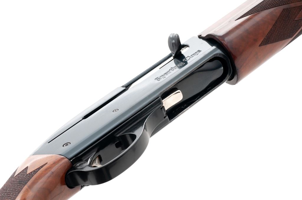 Remington 11-87 Sporting Clays Model Semi-Automatic Shotgun, #PC363569. 12 ga. 28'' vent rib ''Light Contour'' barrel has target beads, 2-3/4'' chamber and is fitted for Rem-Chokes (Mod. installed, Full and Imp. Skt. included). Receiver is standard 11-87, with ''Sporting Clays'' logo added. Wood is ''B'' Grade walnut, satin finished, with special checkering pattern and solid black Remington target buttpad. Mfg'd 1992. Condition is very good, with numerous handling marks to wood. Action locks tight and functions correctly; bore is bright. Est.: $400-$550. (Modern)