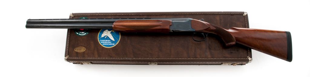 Winchester Model 101 XTR ''Lightweight'' Over/Under Shotgun, #K530290E, 12 ga. 28'' vent rib barrels have 2-3/4'' chambers and are choked Mod./Full. Boxlock action features a single selective trigger, auto ejectors and non-auto safety. Semi-beavertail forend and pistol-grip buttstock are Standard Grade walnut, without grip cap but with a black Decelerator butt pad. Mfg'd mid-1980s by Nikko in Japan for Winchester, contained in Browning hard case. Condition is fair, with extensive field use and perhaps poor storage. There are numerous mars and dings to wood, edgewear to action, and light frosting to barrels. Action is not loose, but is certainly broken in; it functions correctly and is still shootable; bores are bright. Would be a good backup waterfowl gun. Est.: $350-$450. (Modern)