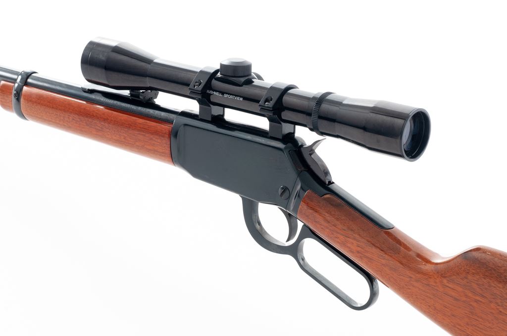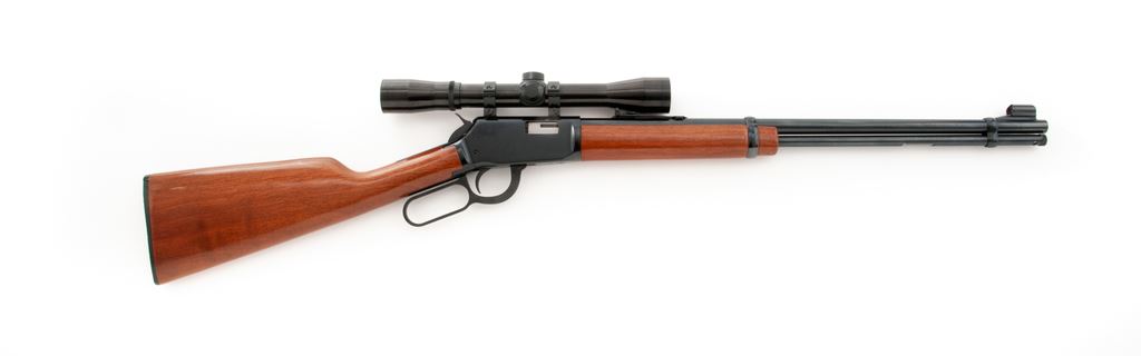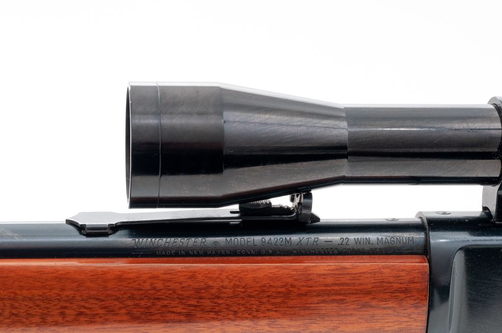 Winchester Model 9422M XTR Lever Action Rifle, with scope, #F348135, .22 Win. mag. cal., 20.25'' round barrel, blue finish, straight grip walnut stock with gloss finish, black composition Winchester buttplate, hooded front sight with silver bead, sporting rear sight, and factory grooved receiver. Topped with a Bushnell Sportview 4x32 scope with duplex reticle. Top of barrel and receiver are Winchester proofed. Approx. 99% original blue finish remains and the overall condition is excellent. Wood with a few shallow marks and a small thick spot of finish at the wrist, otherwise the wood is really nice and smooth. Action is crisp with an excellent bright bore. Inside and out a very clean rifle that shows some signs of handling but appears to have been fired very little. Scope is excellent with clear optics. Est.: $600-$900. (Modern)