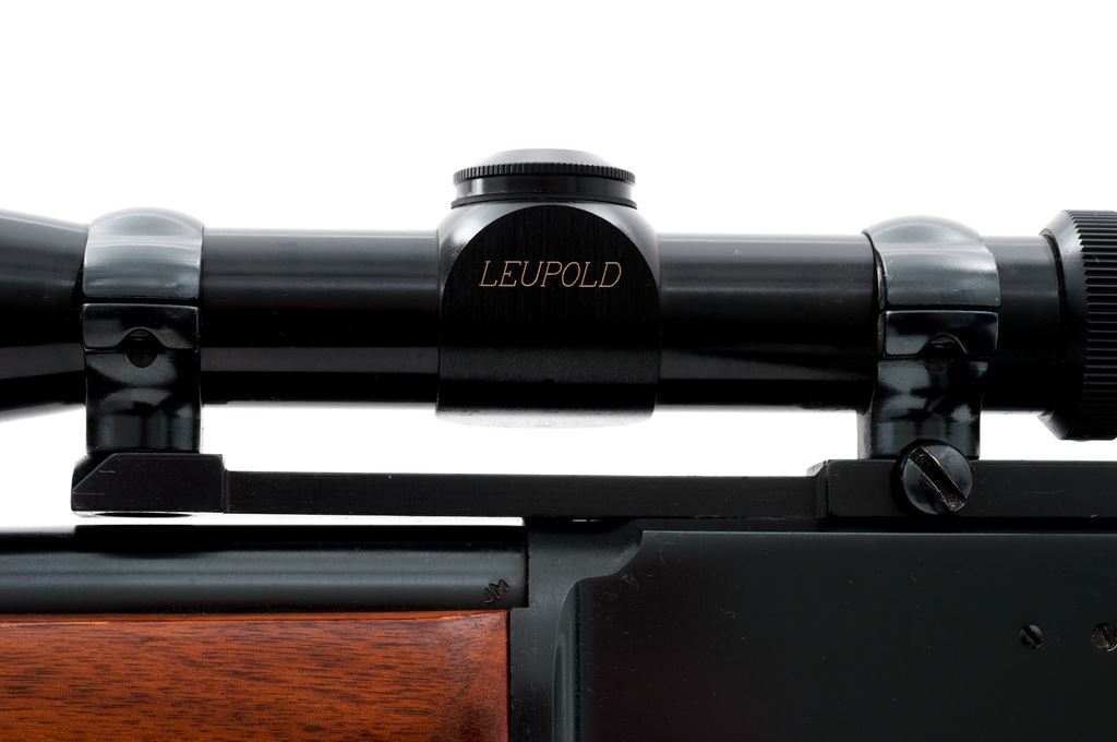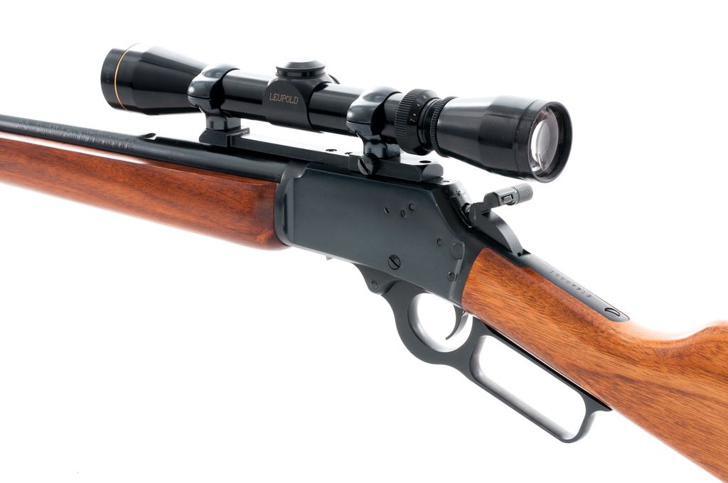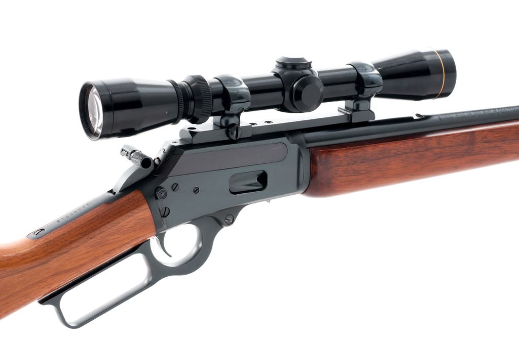 Marlin Model 1894S Lever Action Rifle, with Leupold scope, #10007713, .44 Rem. mag. & .44 Spec. cal., 20'' round ''JM'' marked barrel, blue finish, straight grip walnut stock, brown rubber Marlin buttplate, hooded brass bead front sight, rear sight has been removed, with checkered hammer extension. Topped with a Leupold Vari-X II 2x7 scope with duplex reticle. Rifle is in fine overall condition with approx. 98%+ original blue; right side of receiver with scattered light scratching. Factory lettering is sharp. Wood is relatively smooth with intermittent slight handling marks, predominantly on the forend; buttstock is a little lighter in color than the forend. Lever, hammer, and trigger all operate smoothly; bore is near excellent. Scope with clear optics. Est.: $500-$800. (Modern)