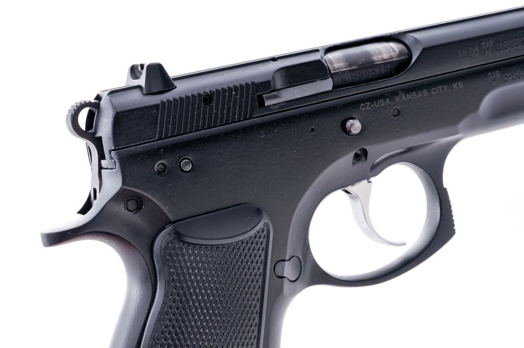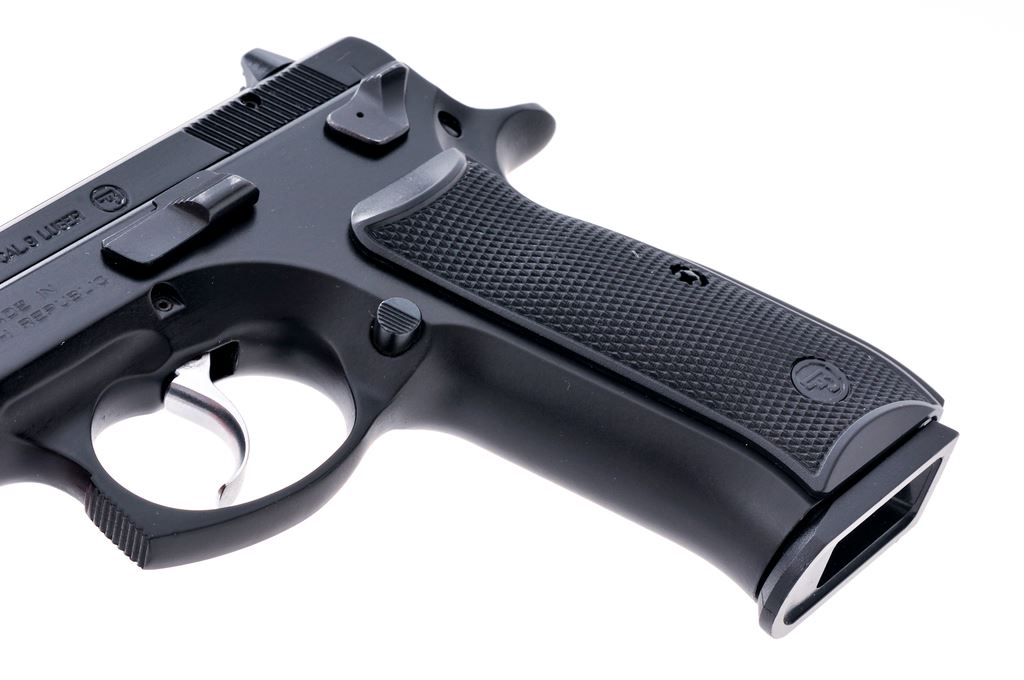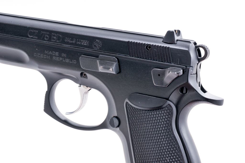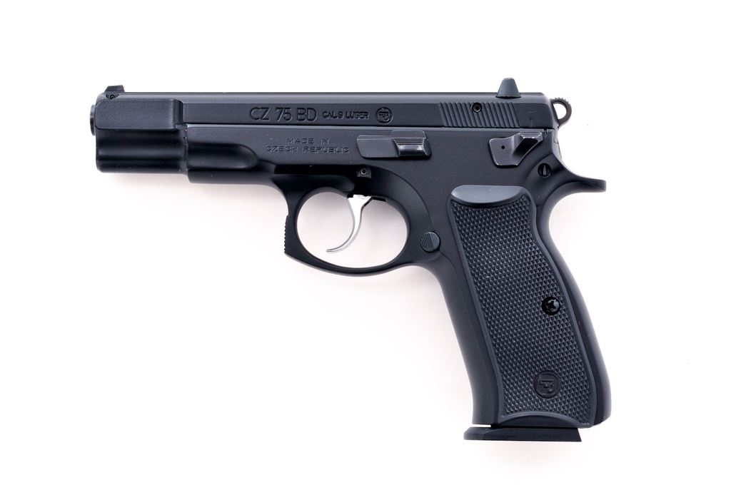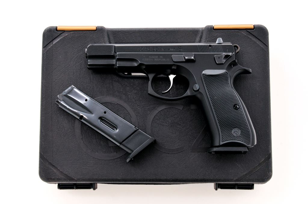 Like New CZ Model 75 BD Semi-Automatic Pistol, #B805259, double/single action, 9mm cal., 4-5/8'' barrel, black finish, factory checkered black plastic grips, fixed white 3-dot sights, de-cocking lever, with two (2) 10-round magazines. In the original hard plastic case with matching end label, cable lock, cleaning accessories, and the owner's manual. Condition is excellent overall and appearing near new. Metal with a few minor handling marks with 99%++ original black finish. Grips appear as new with sharp checkering. Excellent smooth action and mirror bright bore; appearing to have been fired very little. Est.: $400-$600. (Modern/PPT)