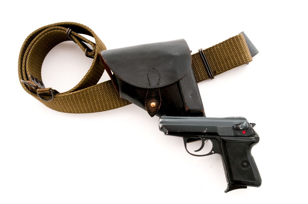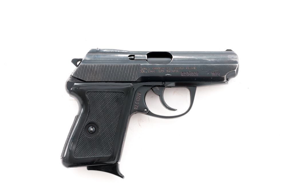 Polish P-64 Makarov Semi-Automatic Pistol, #RZ04028, 9x18mm Makarov cal., 3.3'' barrel, blued finish, black plastic grips, blade front sight and fixed square notch rear sight. Marked on left side of slide ''9mm'' and ''P-64''. Right side of slide is marked with the ''(circle)/11'' factory logo and ''1974''. Matching numbers on frame and slide. Includes one matching number magazine and one mismatched number (13392) magazine. Condition overall is very good with approx. 85% finish remaining on metal surfaces, with light wear to both sides of slide. Grips are very good with light handling marks around the magazine well. Action is smooth, bright bore is excellent. Import marked on right side of slide. A Polish black leather holster stamped with a ''(circle)/11'' and ''1970'' and a green nylon equipment belt in very good condition are included. Est.: $200-$350. (Modern/PPT)