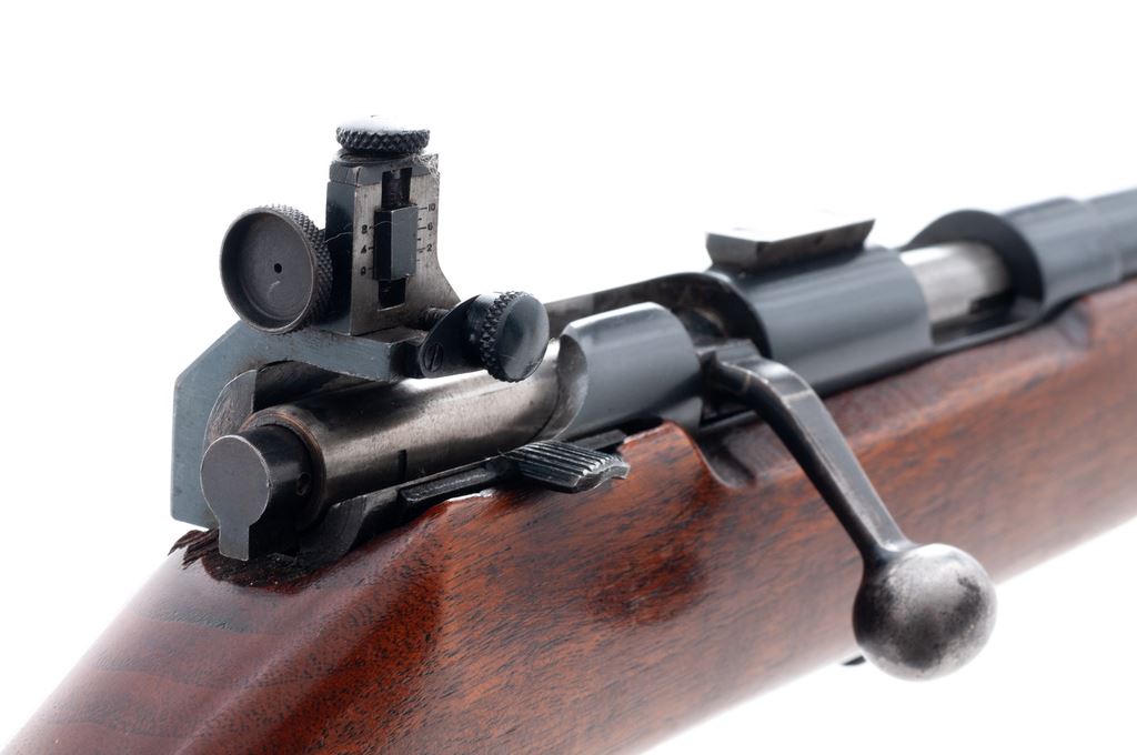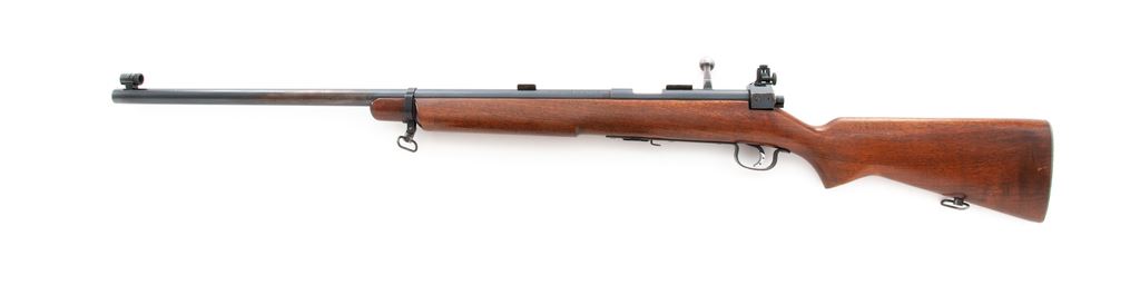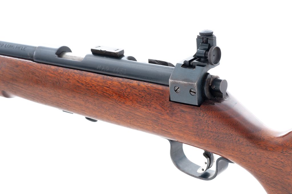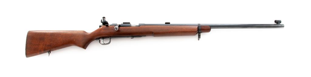 Stevens Model 416 Ranger Bolt Action Rifle, NVSN, .22 LR cal., 26'' barrel, blue finish, smooth walnut stock, Stevens adjustable rear sight, with small globe front sight; dovetailed scope blocks and trigger shoe are in place. Includes one magazine. Condition is fine retaining approx. 92% blue. Stock with mild impressions and some oil darkening. Receiver is very lightly electro-pencil marked. Good crisp action, fine bore. Est.: $200-$400. (C&R)