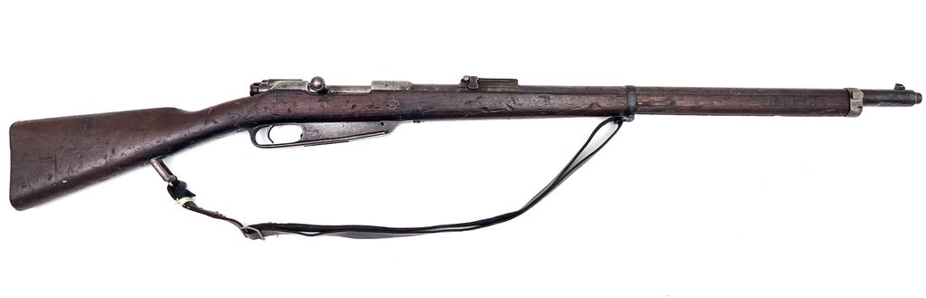 German GEW 88 Commission Bolt Action Rifle, by Spandau (1893), #9509n, 8mm, 29'' barrel, blue finish, bright frame and bolt body, European walnut stock, with brown leather sling. Condition is very good retaining approx. 30% heavily toning and partially cleaned blue finish to barrel. Mismatched bolt and small parts. Stock shows moderate to heavy use. Good action and very good bore. Missing cleaning rod; leather sling with repair. Est.: $250-$400. (Antique)