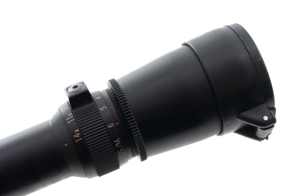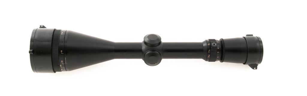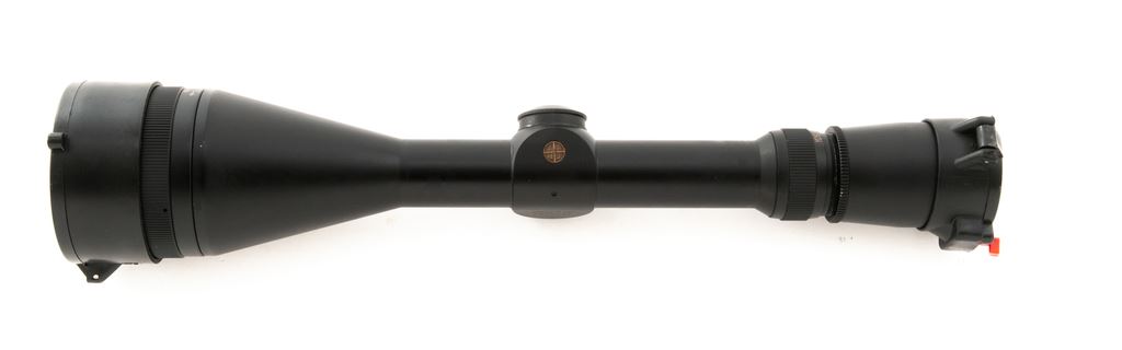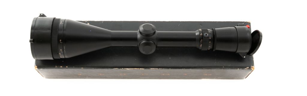 Leupold Vari-X III 4.5-14x50mm Scope, matte black finish, duplex reticle, with Butler Creek lens covers. Overall length is 12-5/8''. In a mismatched Leupold box with green wiping cloth. Condition is excellent. Exterior with light ring marks that have not removed any of the black finish, otherwise externally showing only a few minor handling marks. Optics are bright and clear. Est.: $250-$400.