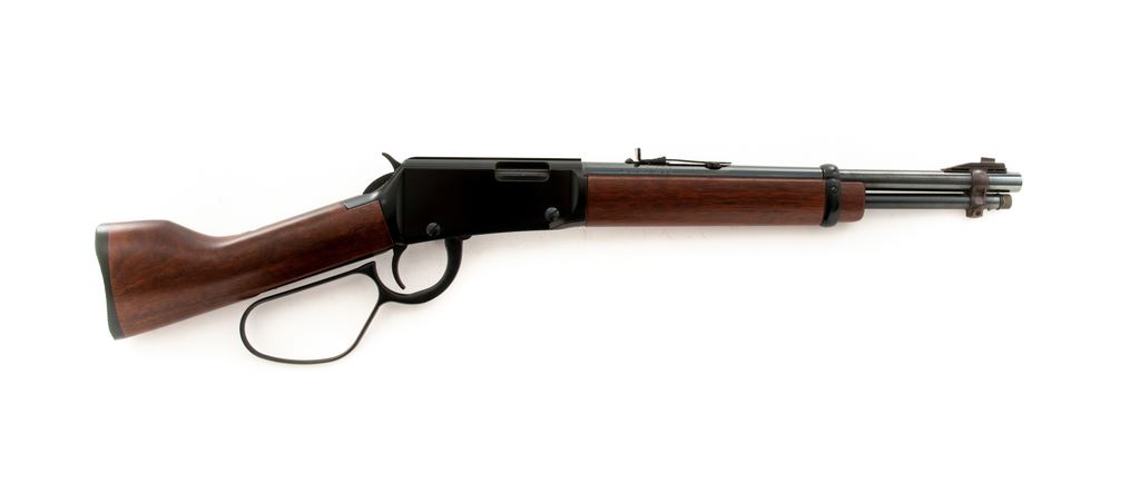 Henry Repeating Arms Mare's Leg Lever Action Pistol, #HML004179, .22 LR cal., 13'' barrel, blue finish, walnut colored hardwood stock, with large loop lever. Condition is excellent, appearing as new and unfired. Considered a handgun by law. Est.: $350-$500. (Modern/PPT)
