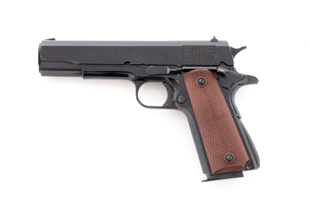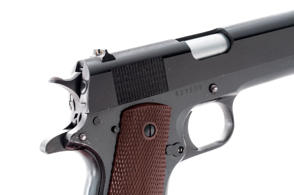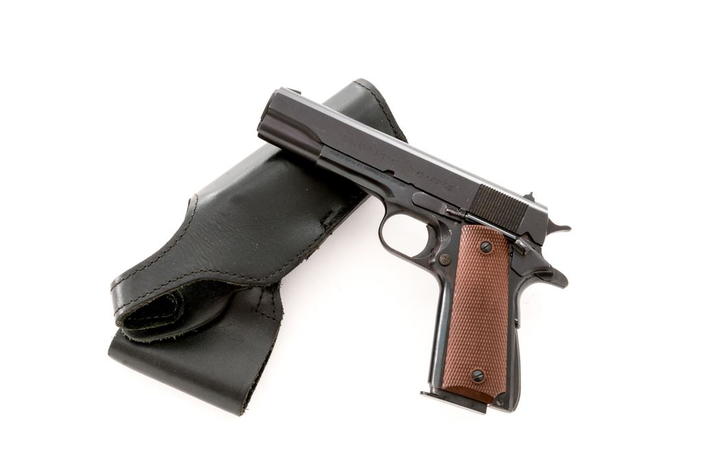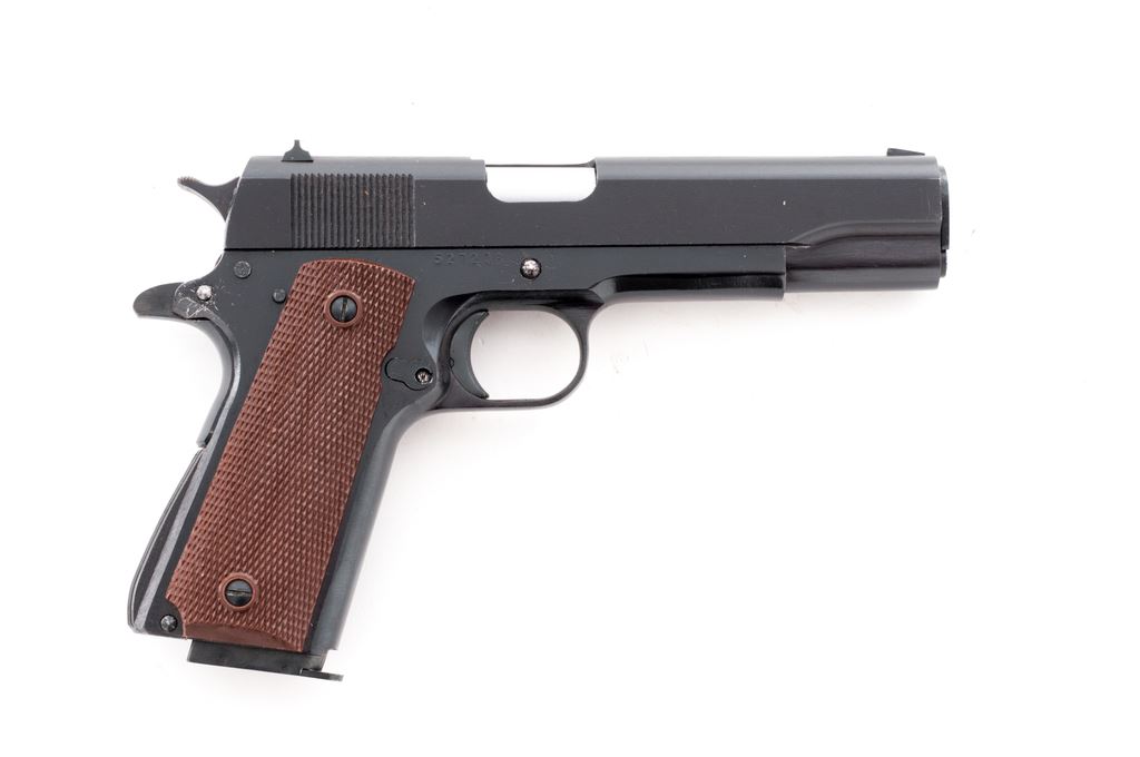Norinco Model 1911-A1 Semi-Automatic Pistol, #527208, .45 ACP cal., 5'' barrel, blue finish, checkered brown plastic grips, with one Chinese magazine, in lined brown leather holster. Condition is excellent showing little use. Est.: $300-$500. (Modern/PPT)