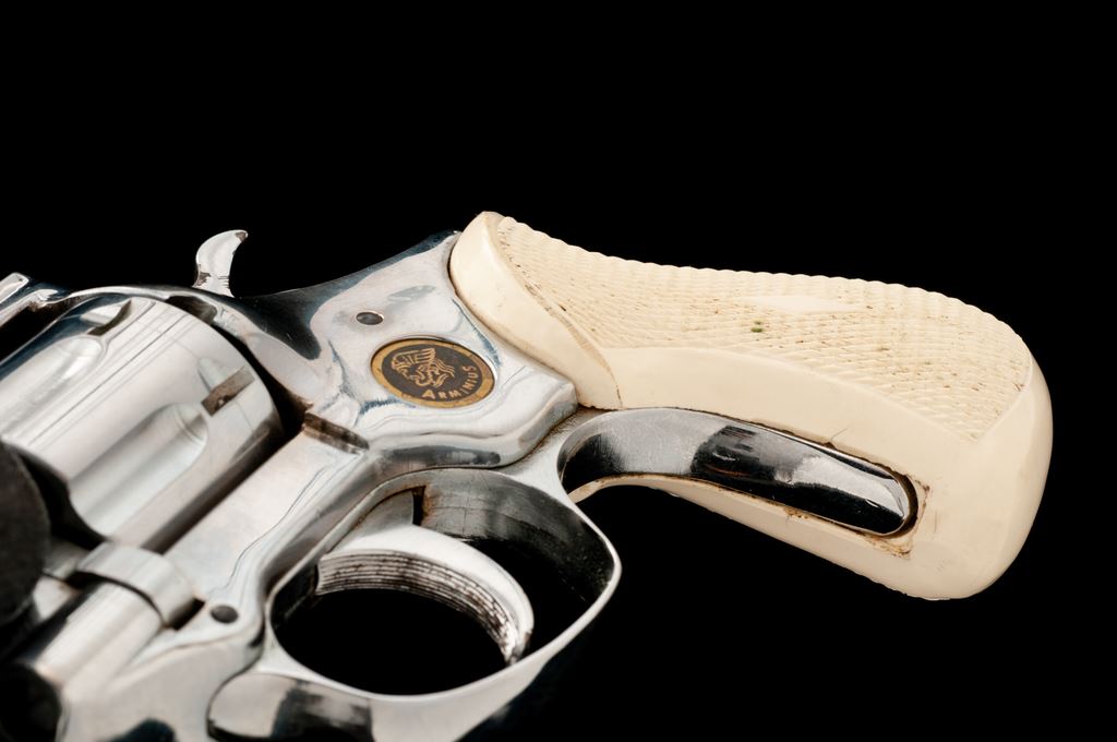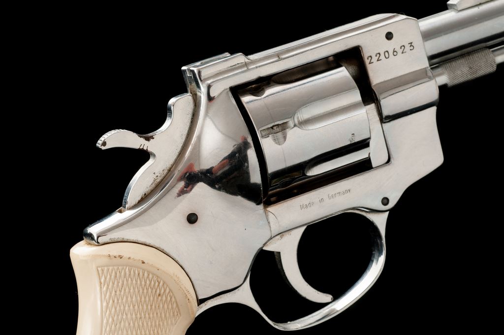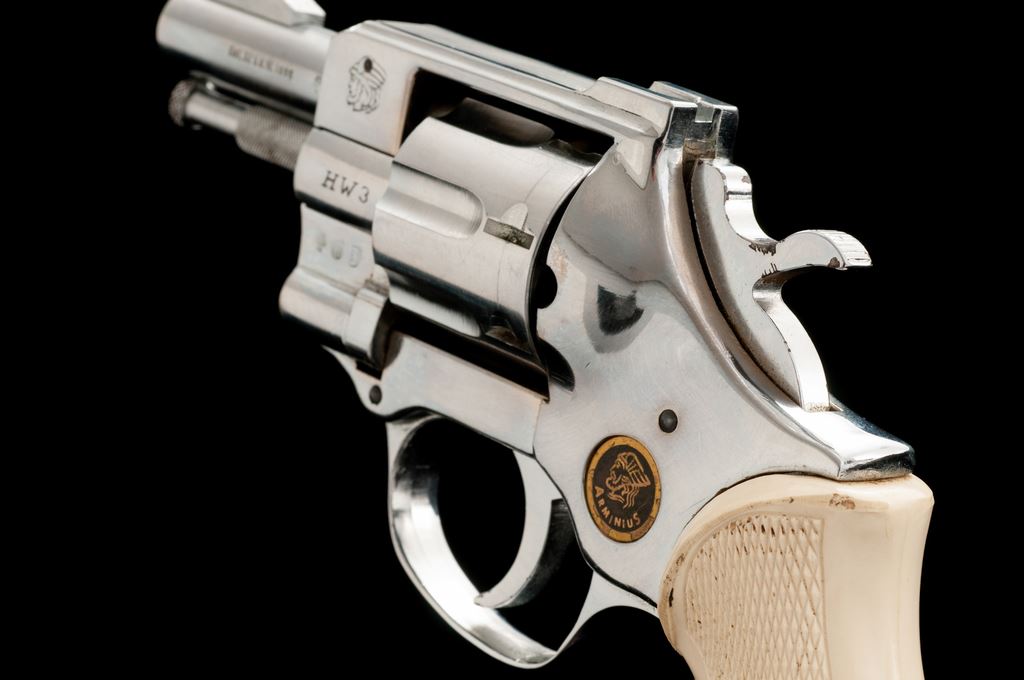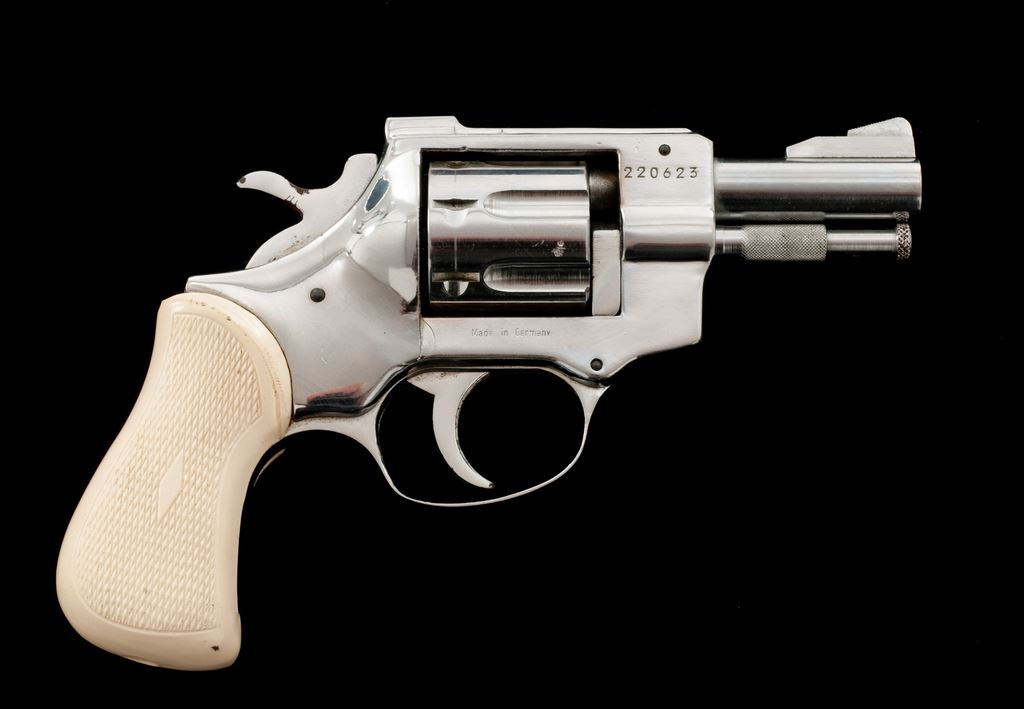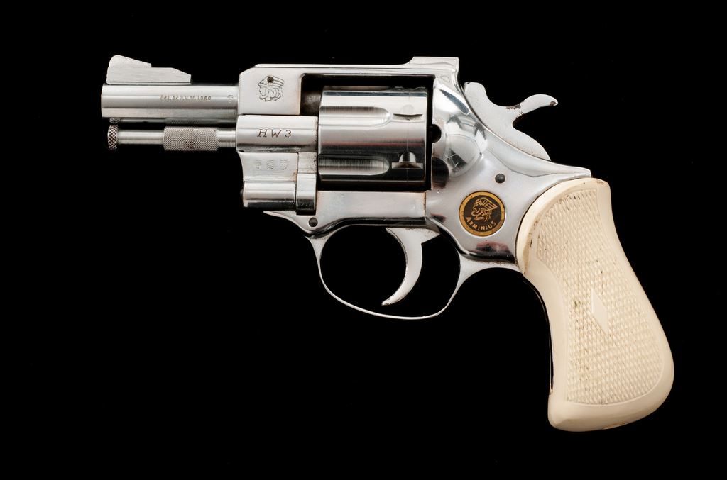 Arminius HW3 Double Action Revolver, #220623, .32 S&W Long cal., 2.75'' barrel, bright nickel-plated finish, checkered white plastic grips, with standard fixed sights. Made in Germany. Condition is very good with approx. 98% nickel finish that shows general light scratching and small handling marks. Grips checkering is sharp, but both could use a light cleaning. Action is crisp, bore is near excellent. Est.: $100-$150. (Modern/PPT)