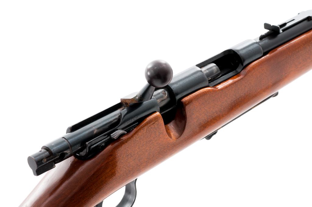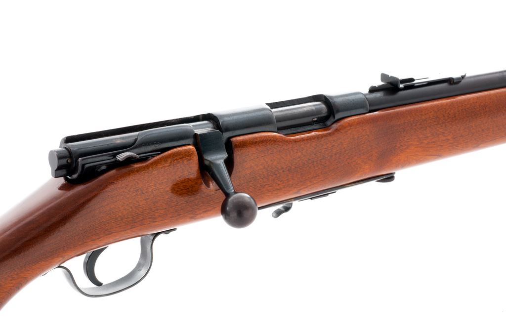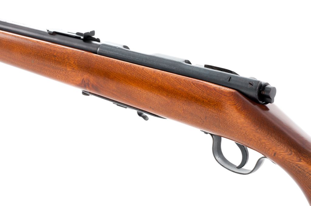 Stevens Model 84D Bolt Action Rifle, NVSN, .22 S-L-LR cal., 24'' barrel, blue finish, one-piece pistol-grip wood stock, black plastic buttplate, standard sights, with one ''S'' marked magazine. Condition is good. Metal retains a majority of its toning blue finish with brownish freckling along the receiver and some fine pitting along the barrel, predominately near the barrel address. Stock is mostly smooth with a small area of putty to the left side of the buttstock, as well as an added coat of semi-gloss finish. Fine action and bore. Est.: $60-$120. (C&R)