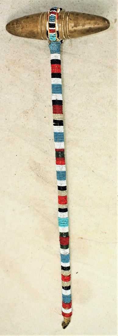 Brilliant colored fully beaded stonehead war club with appealing design and measuring 6" x 19".