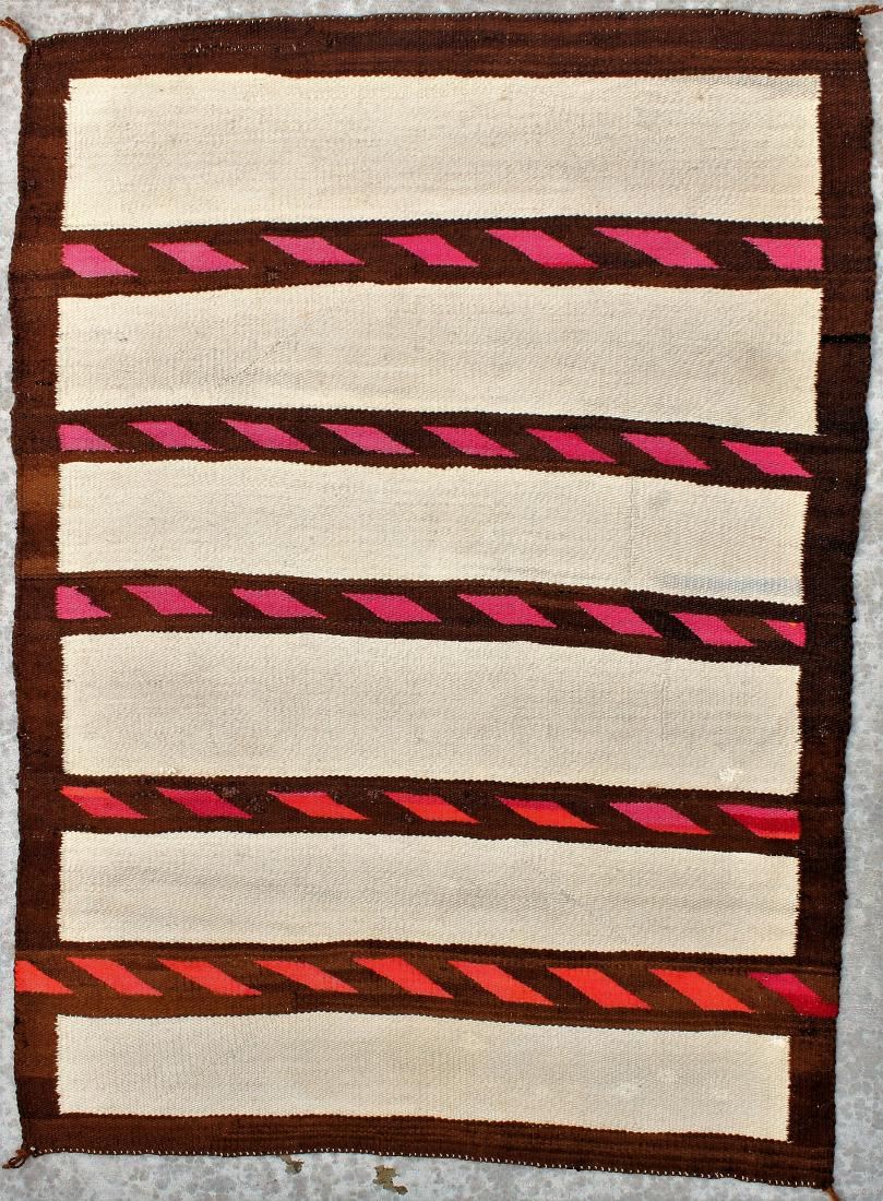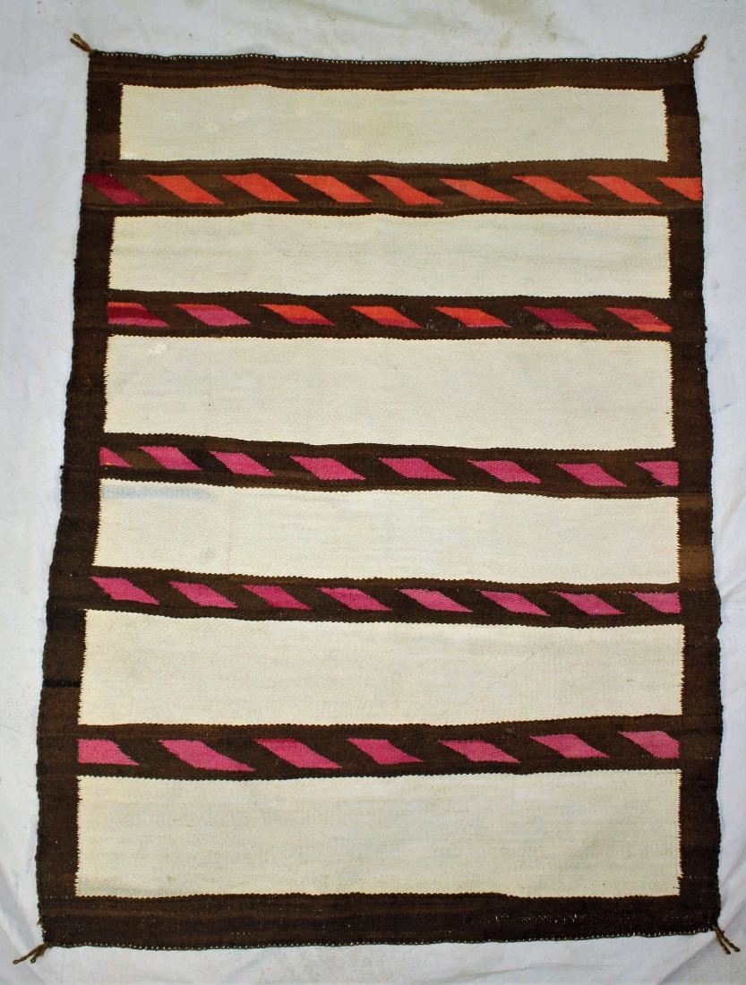 1920's Banded horizontal stripe design, of woven hand spun Churro sheep wool. Dimensions 40"x 55".