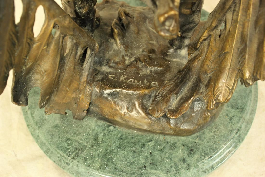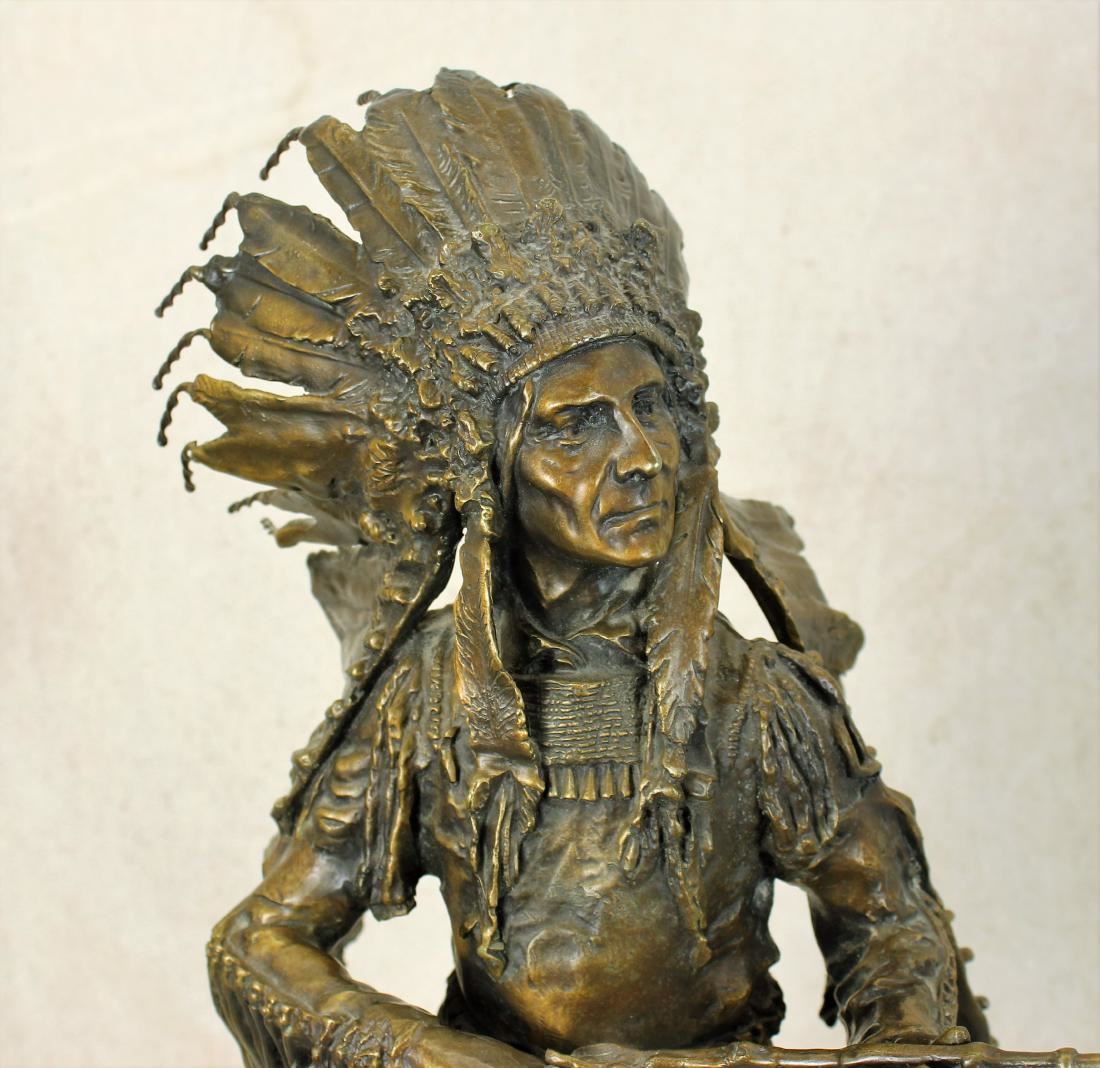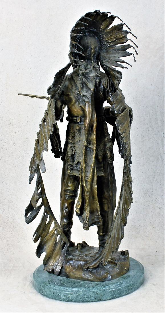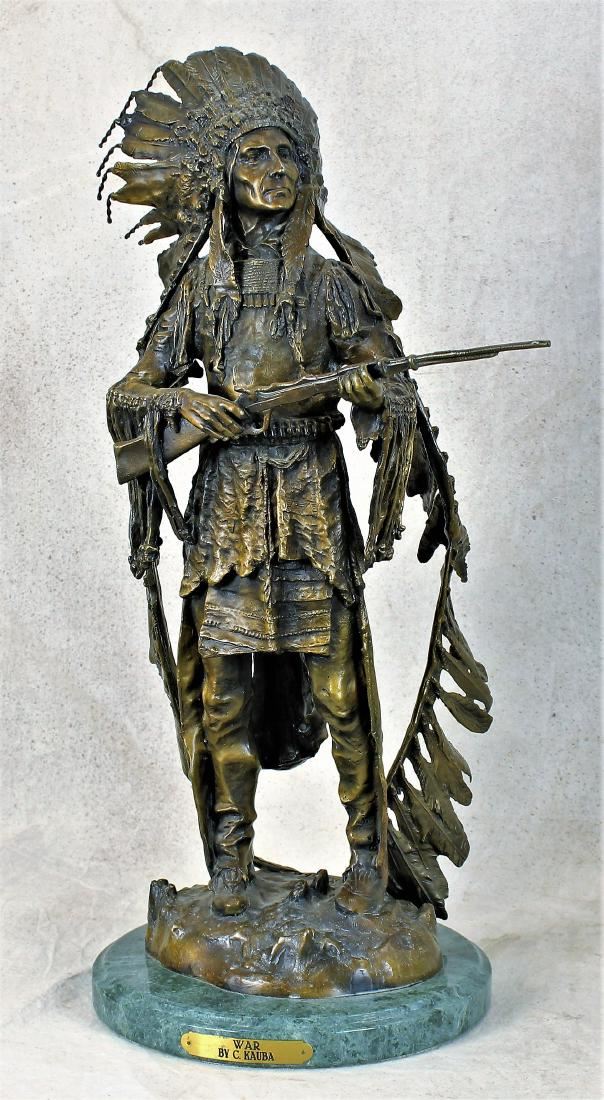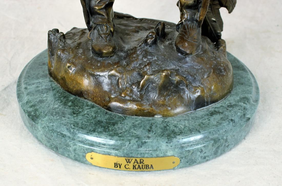 Impressive bronze done by widely collected and noted artist, titled "War", with great detail and expression. Artist signed and measuring 26" tall.