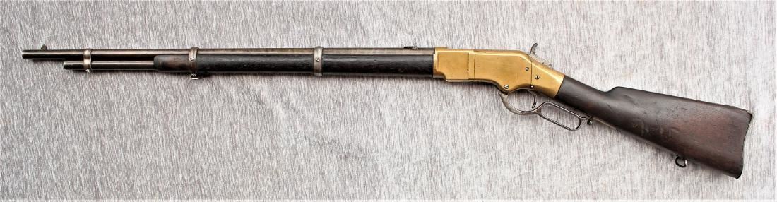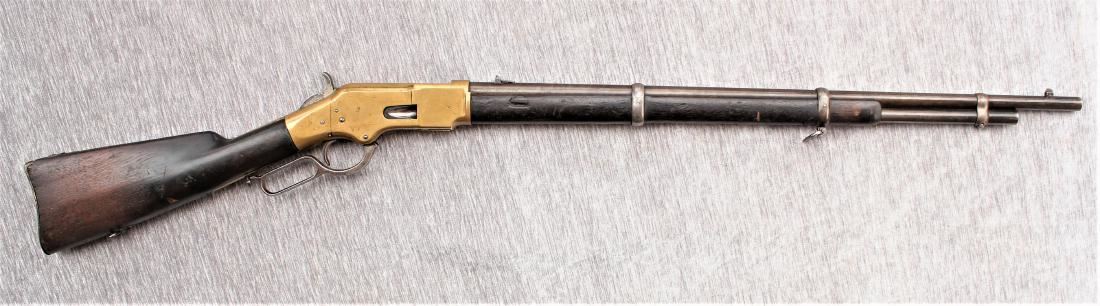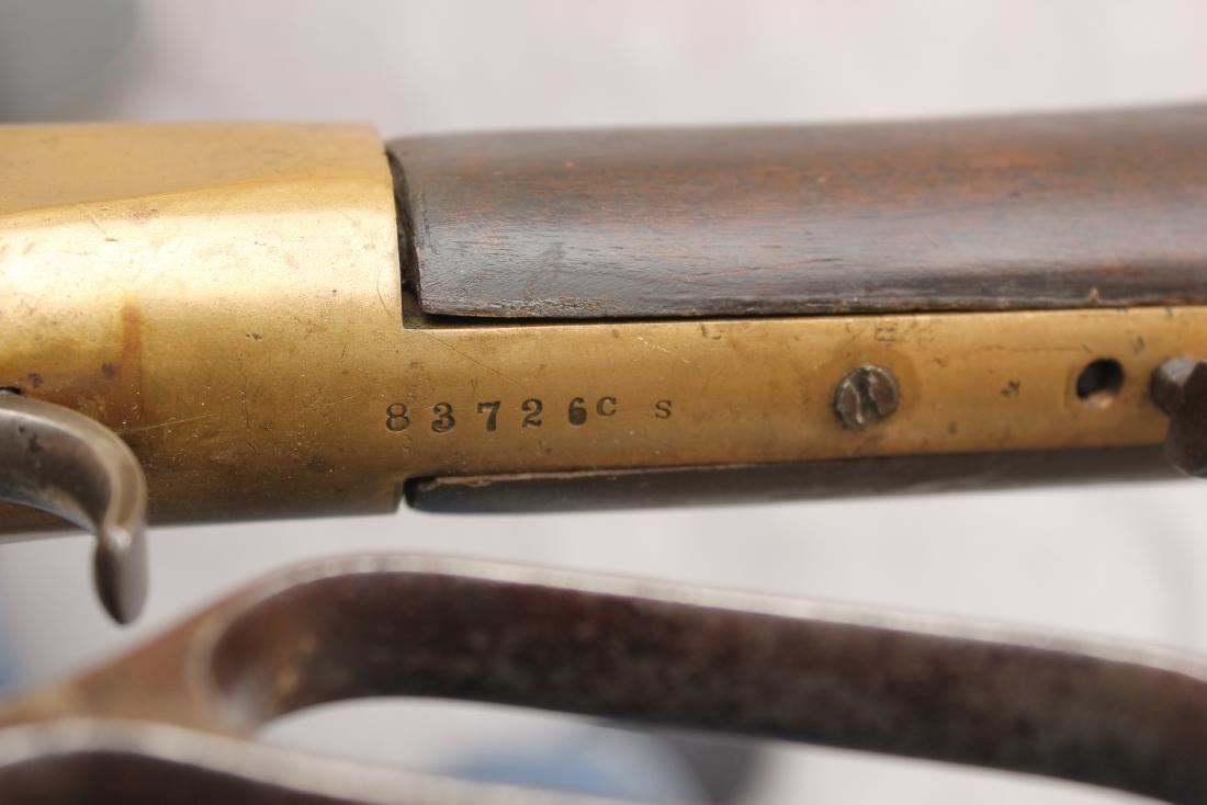 Early 1866 musket with 83,000 range serial number, showing beautifully patinaed brass reciever, rich medium colored wood, and plumb colored metal. With nicely functioning action, and good bore.