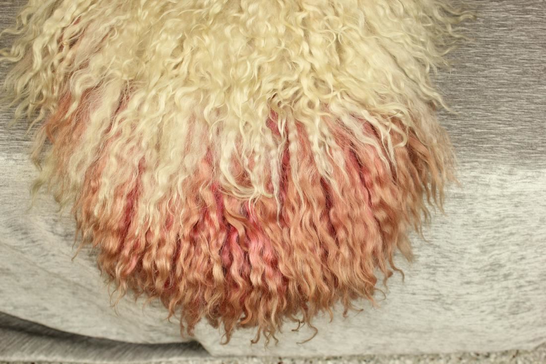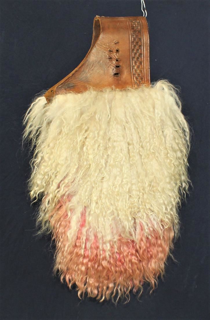 Wonderful and rare angora saddlebags, with a never seen two color design. With great long twisted hair, light colored leather and desirable early maker's mark.