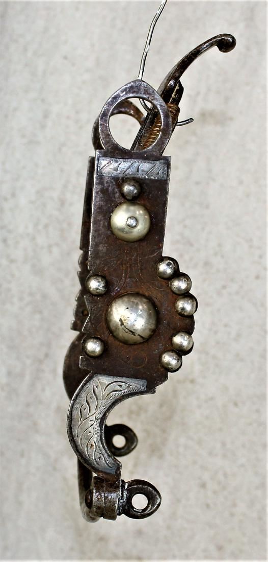Iron Santa Barbara style spade bit with tall mouth piece, multiple silver domes and nice maker's mark.