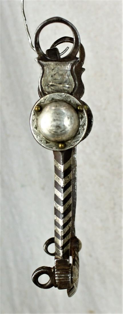 Early iron straight shank Las Cruces bit with engraved silver Chevrons and domes.