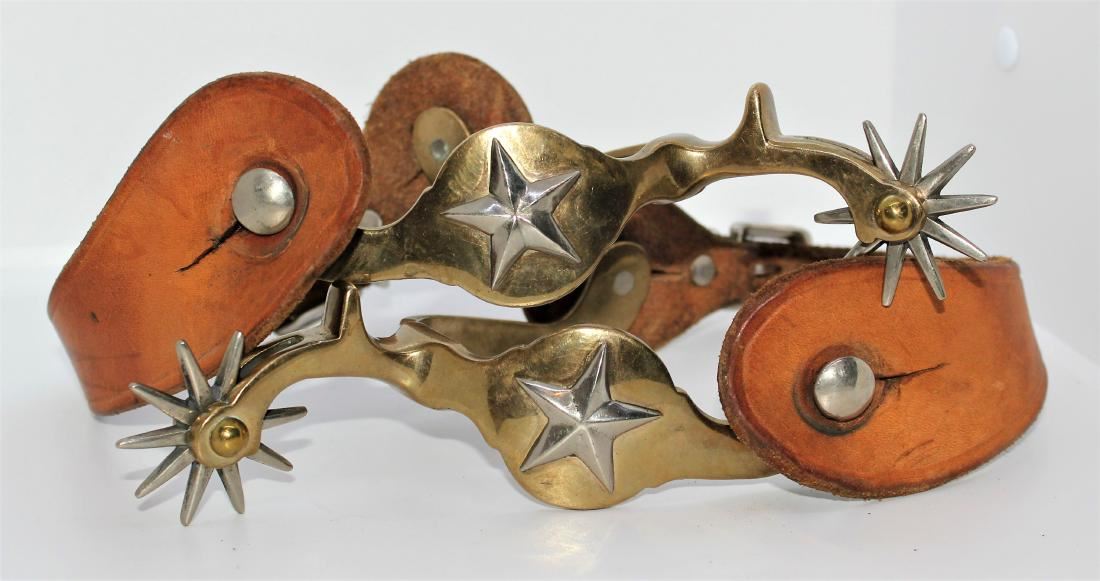 Highly sought after Silver Star pattern spurs, pattern 1292 1/2, with 1 3/4" multi-point rowels. In wonderful condition with deep patina.