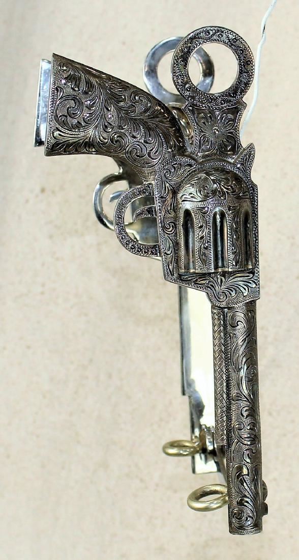 Fully silver overlaid bit with elaborate engraving pattern, and Mona Lisa mouthpiece. Nicely maker marked "Les Vogt", showing fine conditon and deep patina.