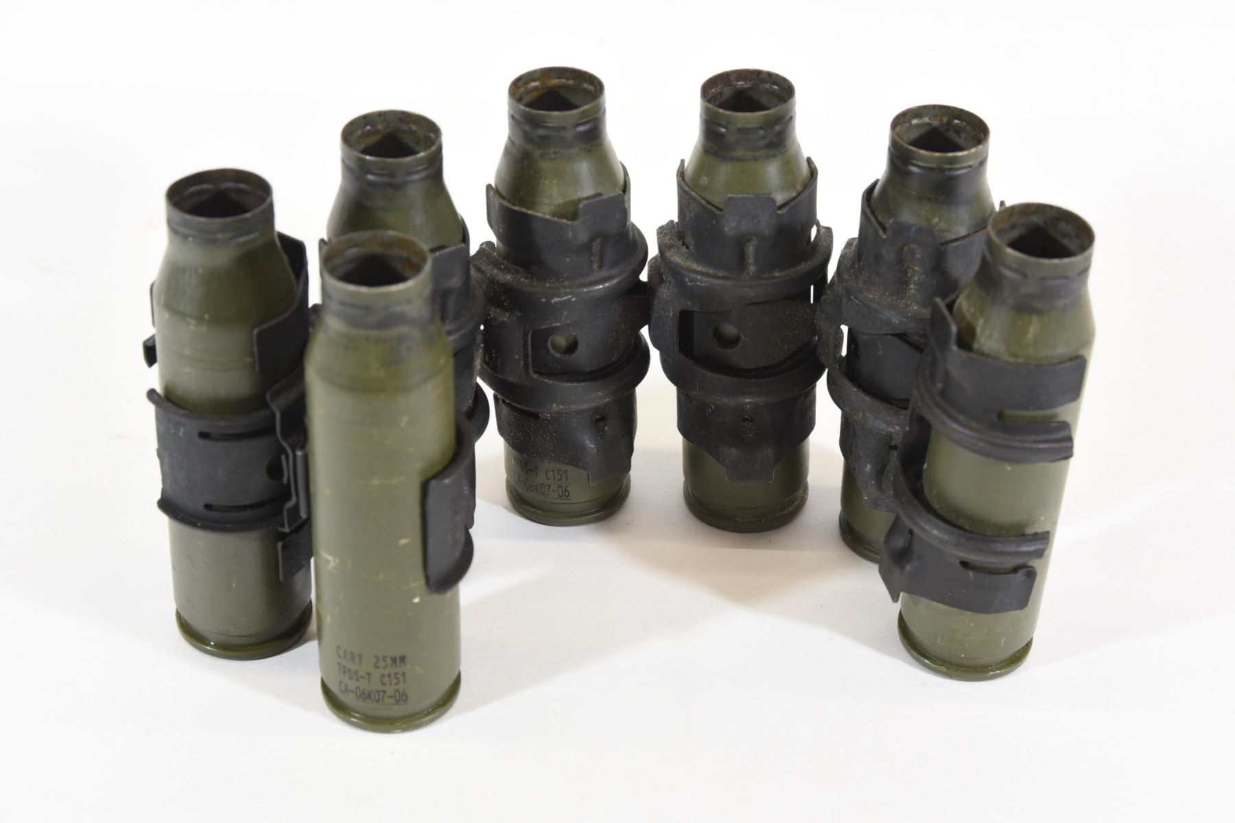 7 empty shell casings in a clip, 25mm shells.