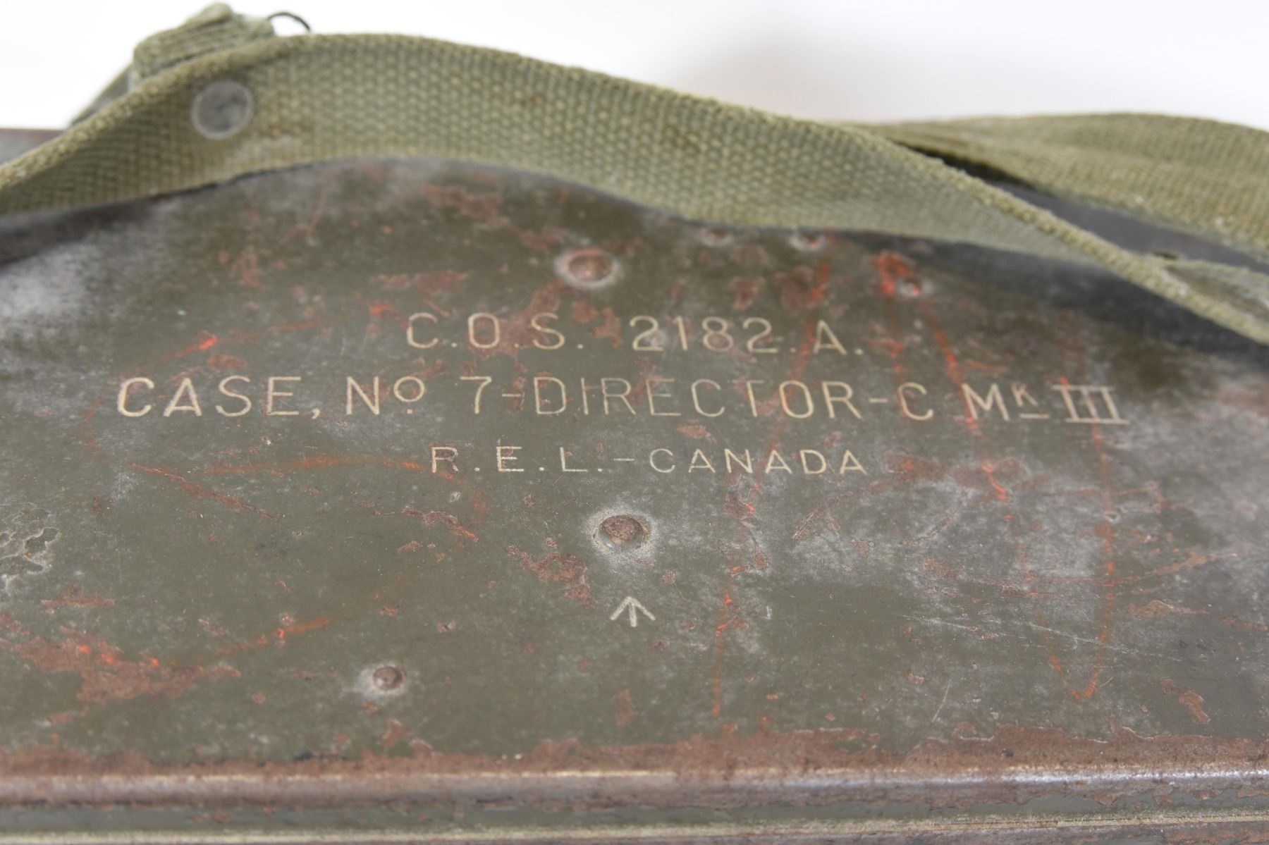 Markings are 969-C, R.E.L. / Canada, O.S. 3910 S.A.. Comes in metal case with markings C.O.S. 2182. A., Case, No. 7-Director-C Mk 111, R.E.L. - Canada. From 1942 in good condition, appears to be missing front sun shade.
