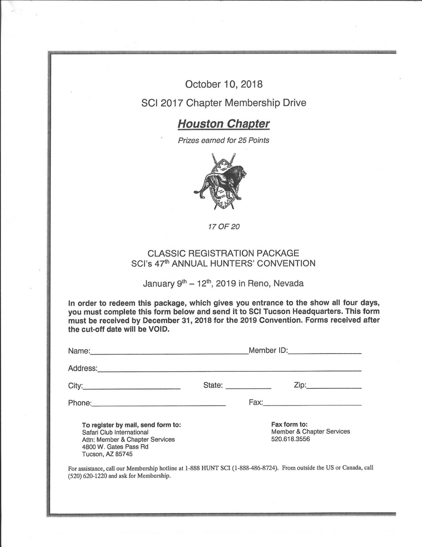The CLASSIC REGISTRATION PACKAGE gives you entrance to the January 9-12, 2019 SCI SHOW in Reno, NV all four days. You must send in your form by December 31, 2019. Minimum Bid: $250 each (3 available) or Buy IT NOW for $300 at www.scihouston.org/BuyItNow.html