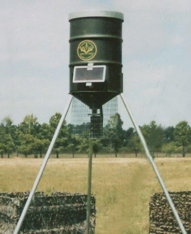 The 400 LB. AUTO GAME FEEDER FROM SOUTH TEXAS TRIPODS & FEEDERS comes equipped with the following: an industrial grade 100 MA solar panel, Black Box timer incorporating a Grasslin programmable 24-hour quartz clock and 12 volt, 7 AMP-Hour maintenance free long life battery and varmint guard. All are combined to give you the most trouble free, reliable feeder on the maker today, and it comes with a 5-year electronics warranty. This is a 100% donation by Janie & Chuck Cashdollar. Minimum Bid: $450