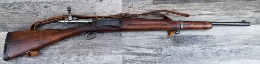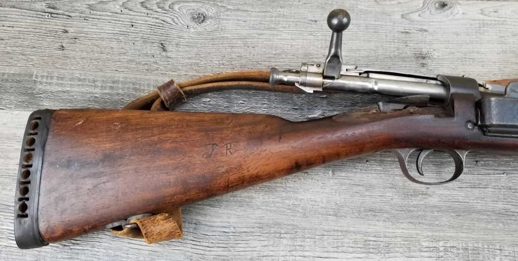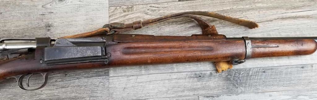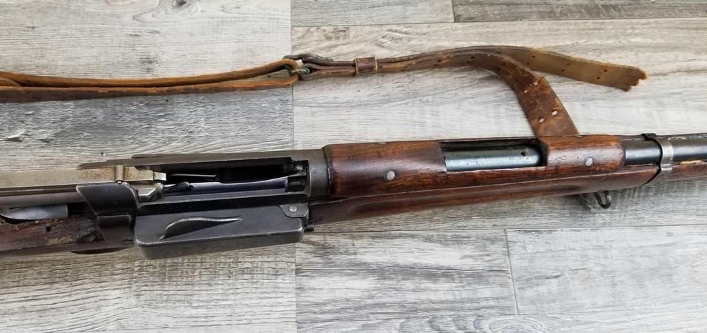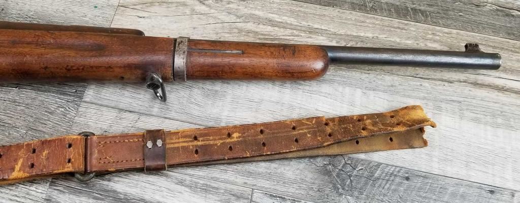 SPORTERIZED CARBINE. MISSING REAR SIGHT, FRONT SIGHT BLADE. LARGE CHIP OUT OF STOCK AT WRIST. BORE IS GOOD.